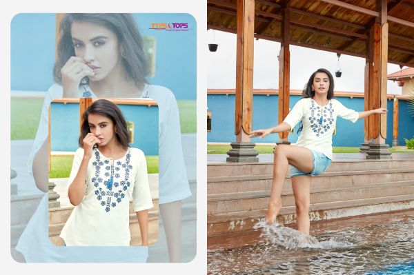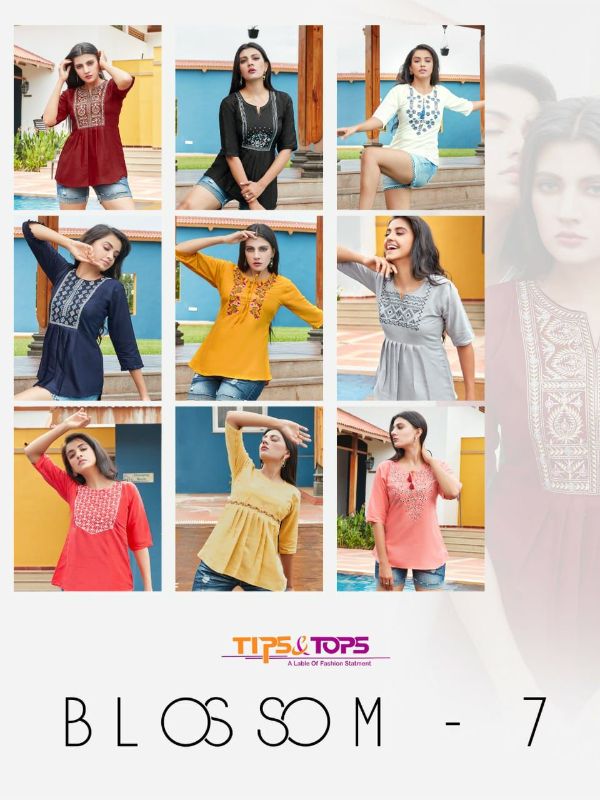 Tip & Tops Presents Blossom Vol-7 7001-7009 Series Heavy Rayon Linen Fancy Short Tops With Extraordinary Patterns Collection