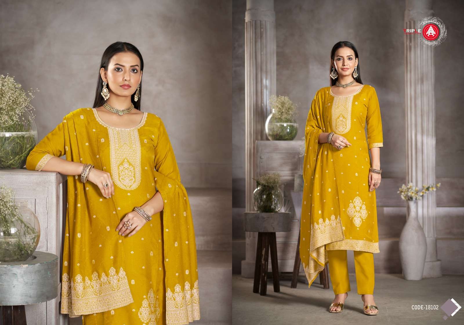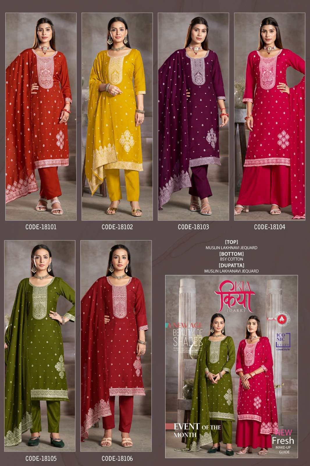 | Catalogue: | TRIPLE A KIA DARK MUSLINE LUKHNOWI JAQUARD SUITS |