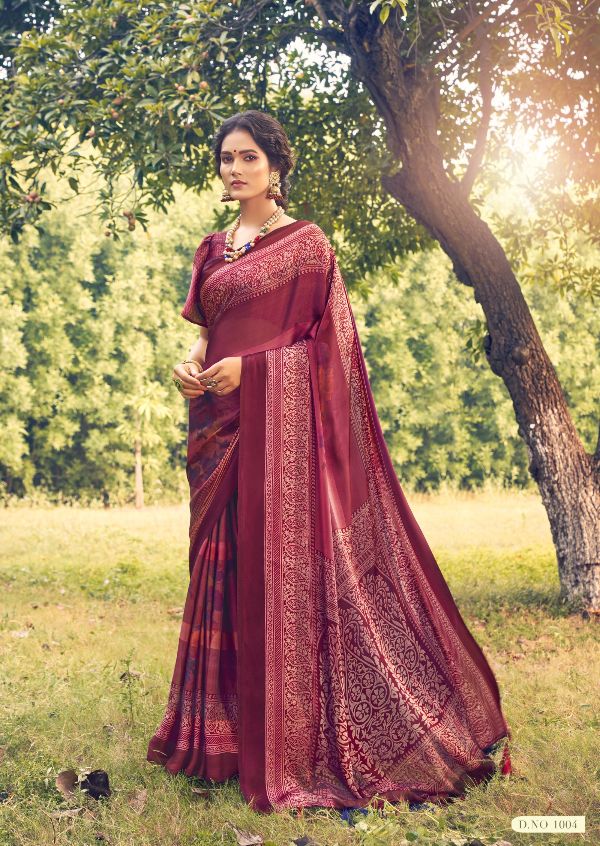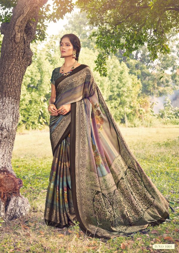 Triveni Sarees Presents Abeer 1001-1008 Series Crepe Silk Floral Work Saree Collection#1553