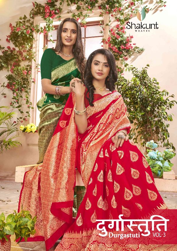 Triveni Sarees Presents Durgastuti-03 25362-25367 Series Soft Art Silk With Jacquard Woven Work Saree Collection