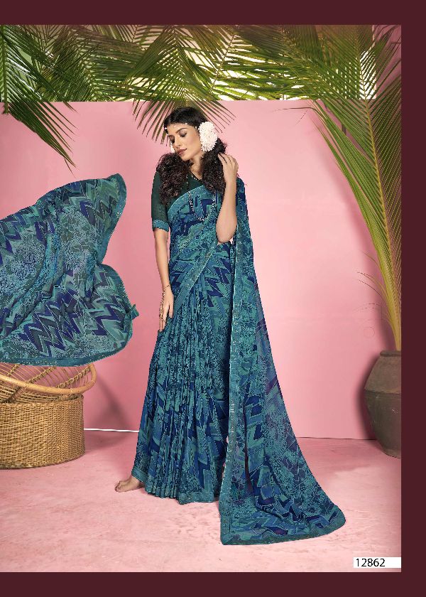 Triveni Sarees Presents Honey 12861-12868 Series Fancy Georgette Saree Collection#1662