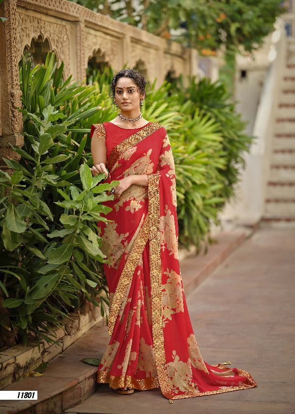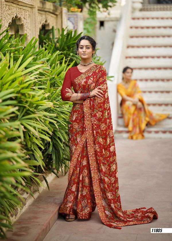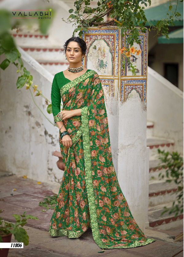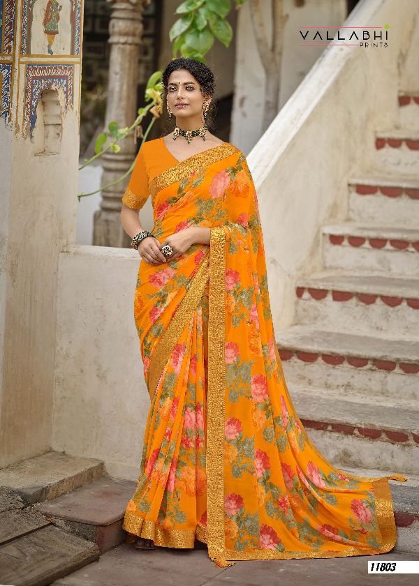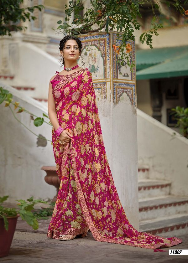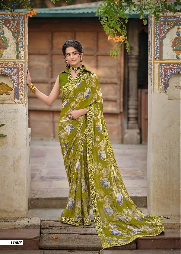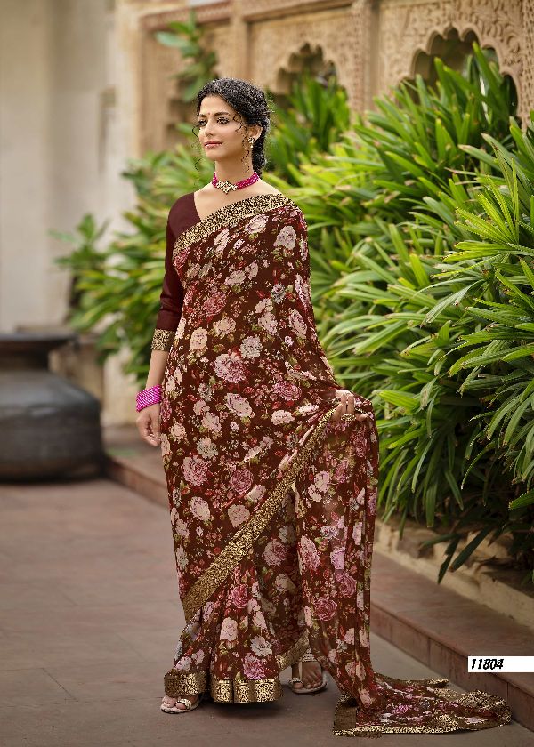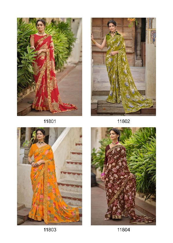 Triveni Sarees Presents Milano-02 11801 - 11808 Series Pure Georgette With Florial Printed Fancy Saree Collection