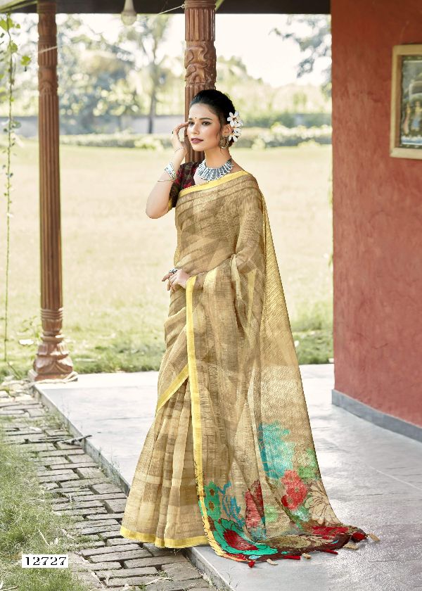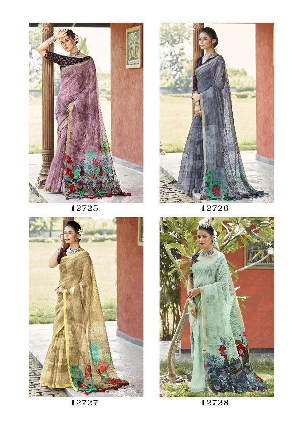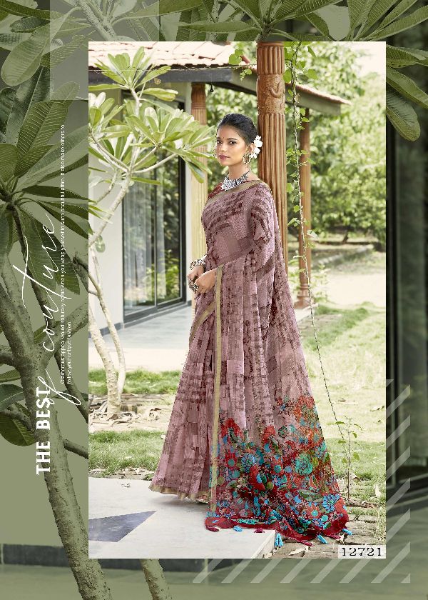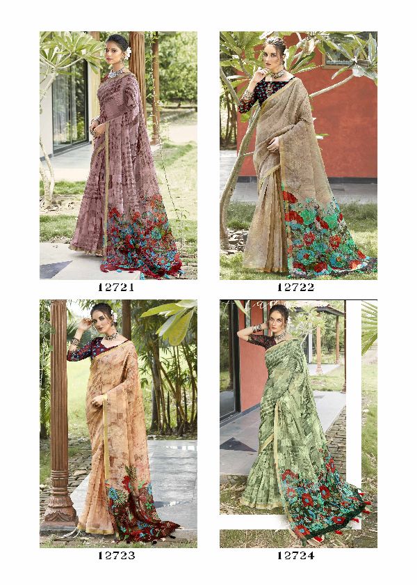 Triveni Sarees Presents Prayosha 12721-12728 Series Soft Cotton With Abstract Printed Zari Woven Stripes Saree Collection#1564