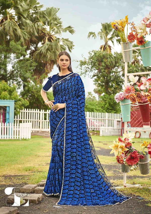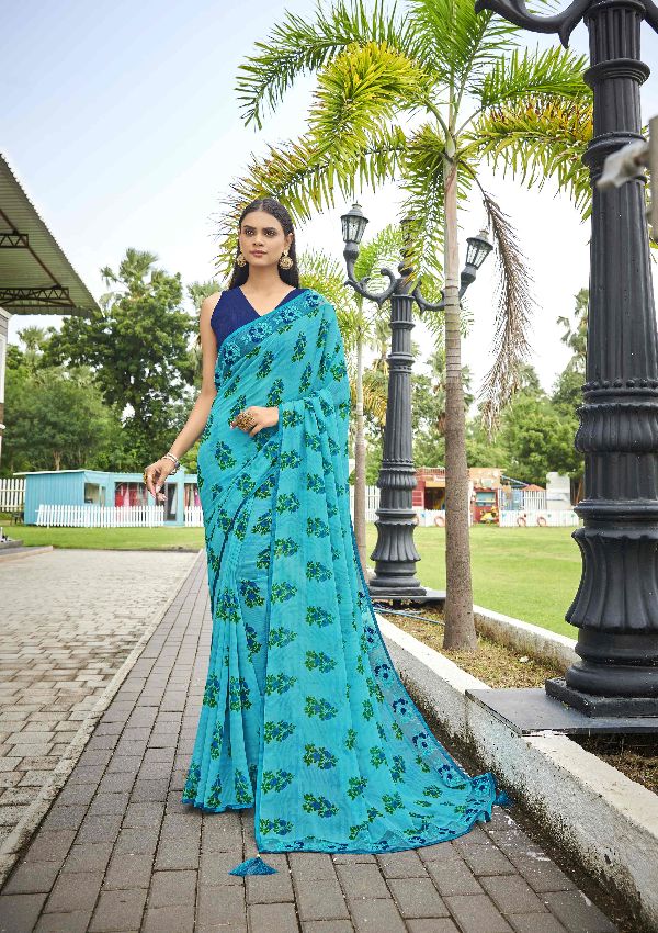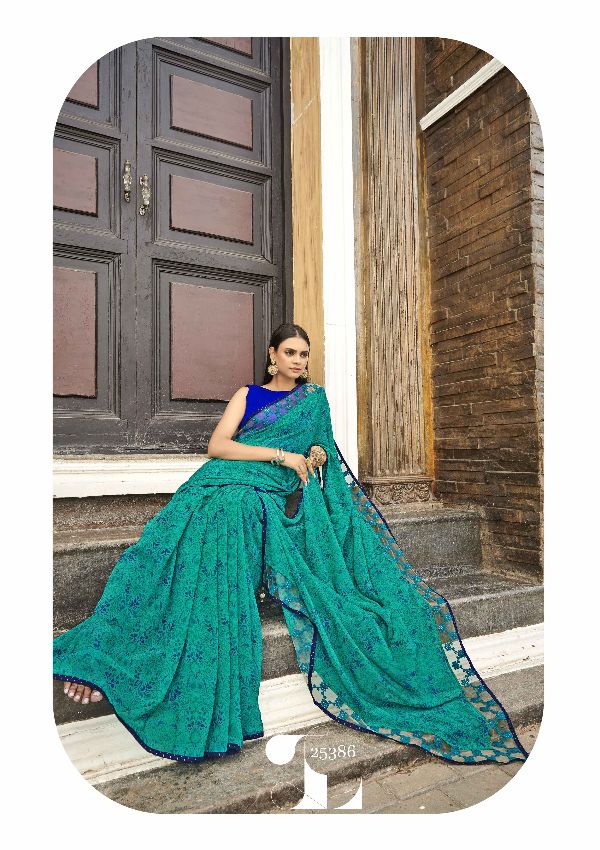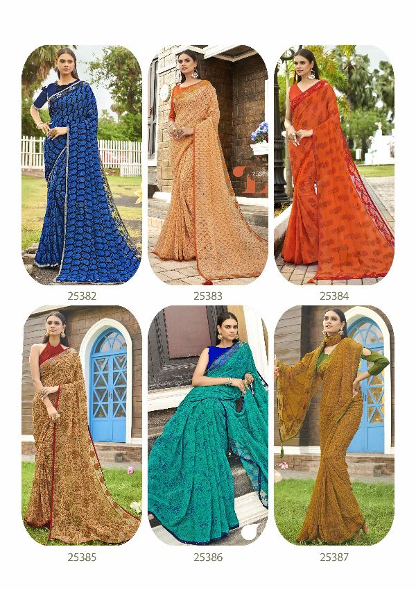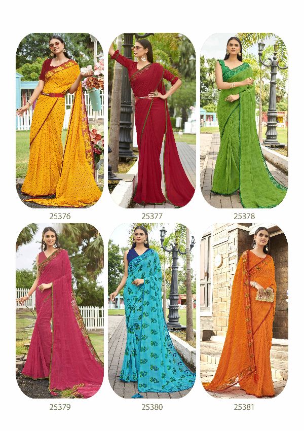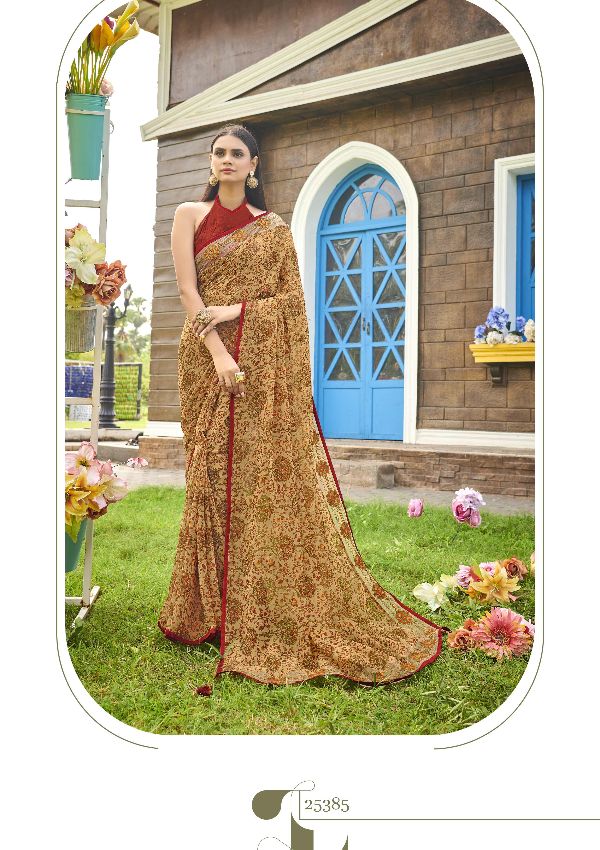 Triveni Sarees Presents Roohi 25381 - 25387 Series Pure Georgette With Floral Print And Embroidery On Pallu Fancy Saree Collection