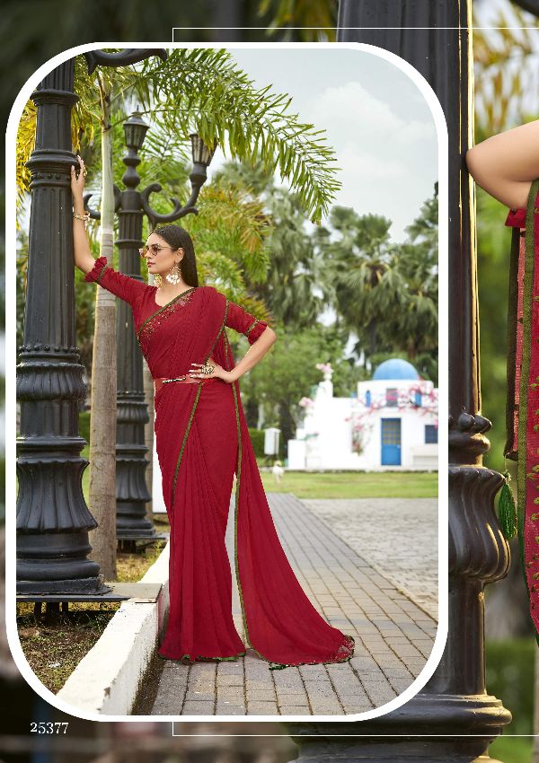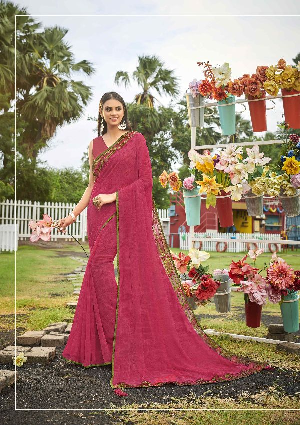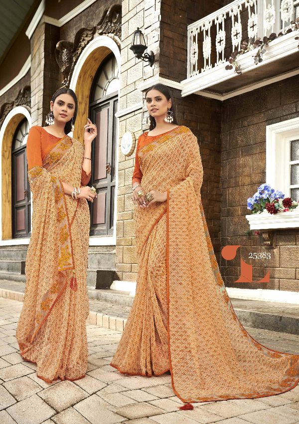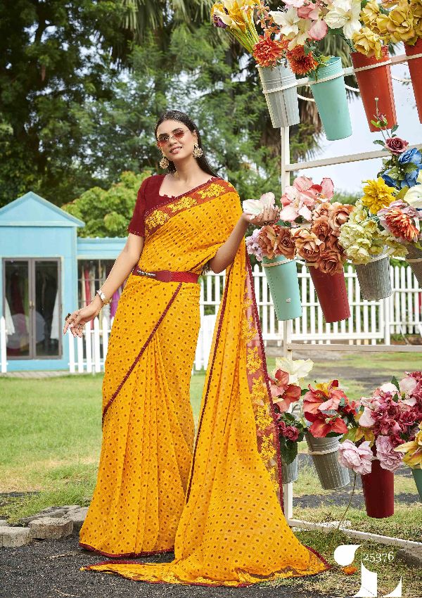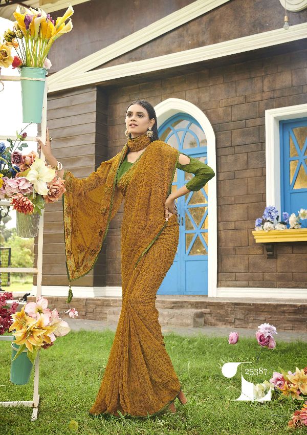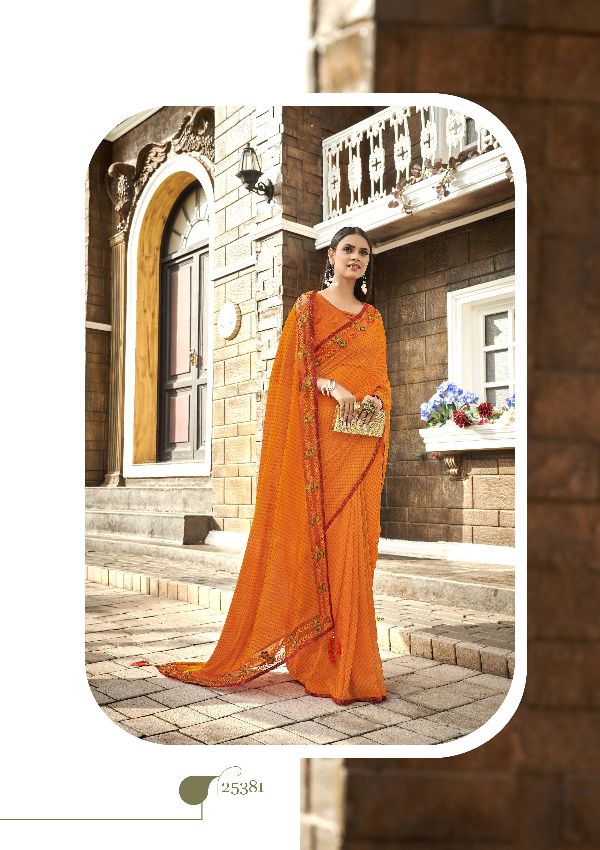 Triveni Sarees Presents Roohi 25381 - 25387 Series Pure Georgette With Floral Print And Embroidery On Pallu Fancy Saree Collection