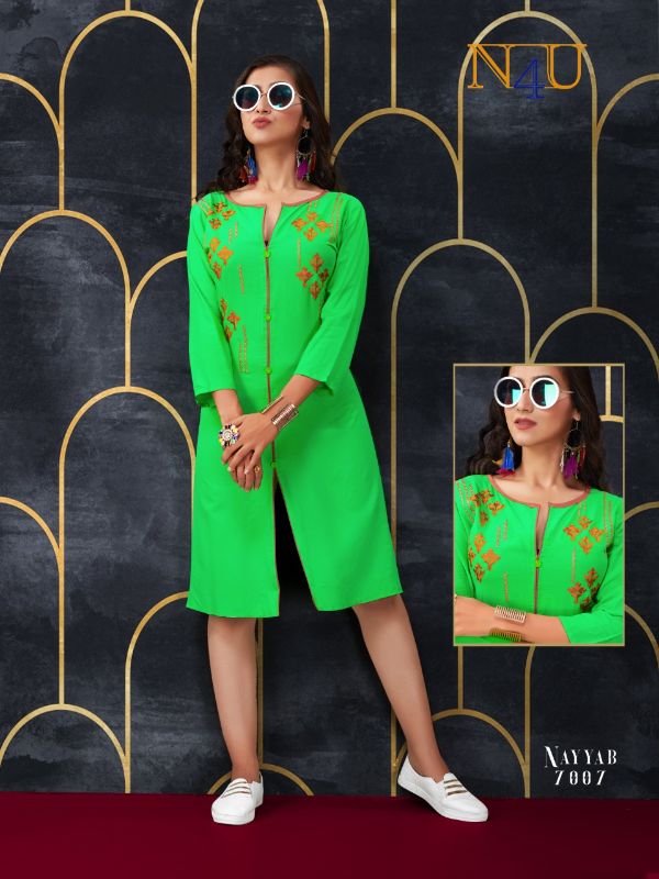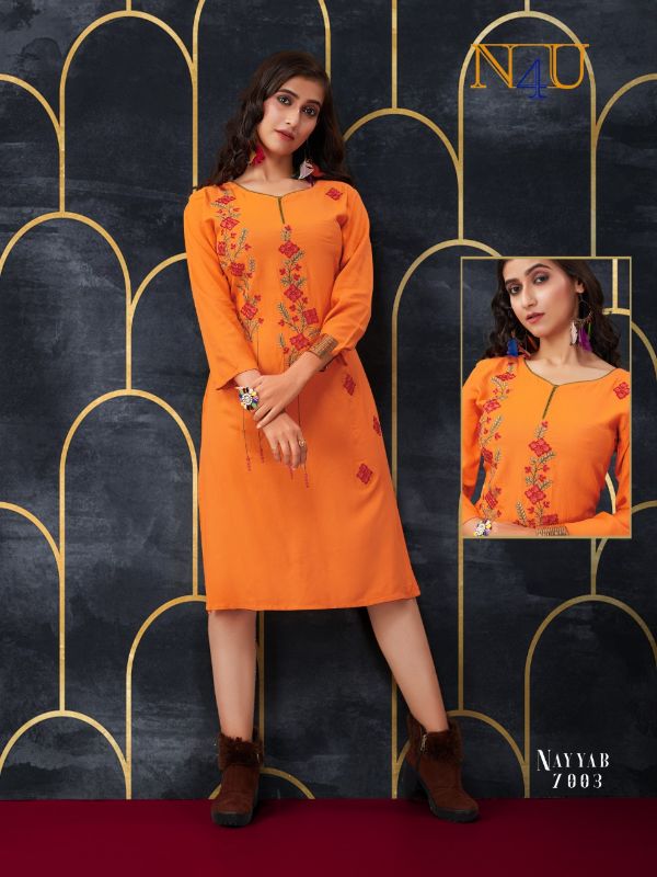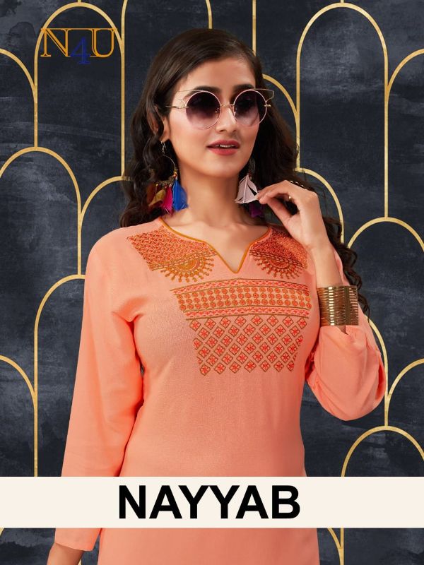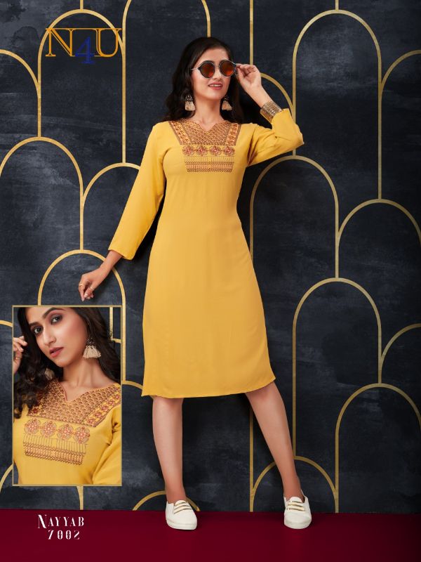 Tunic House Presents Naayab 7001-7007 Series Rayon With Embroidery Work Fancy Kurti Collection
