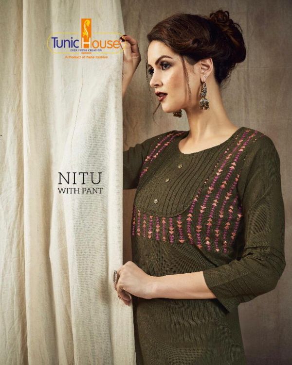 Tunic House Presents Nitu 2017-2022 Series Cotton Slub With Embroidery Work Fancy Kurti With Bottom Collection