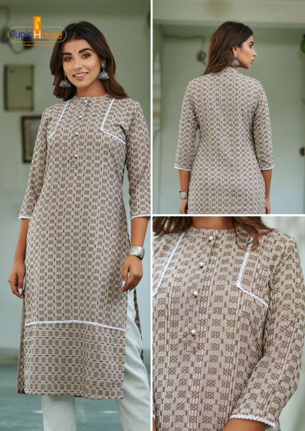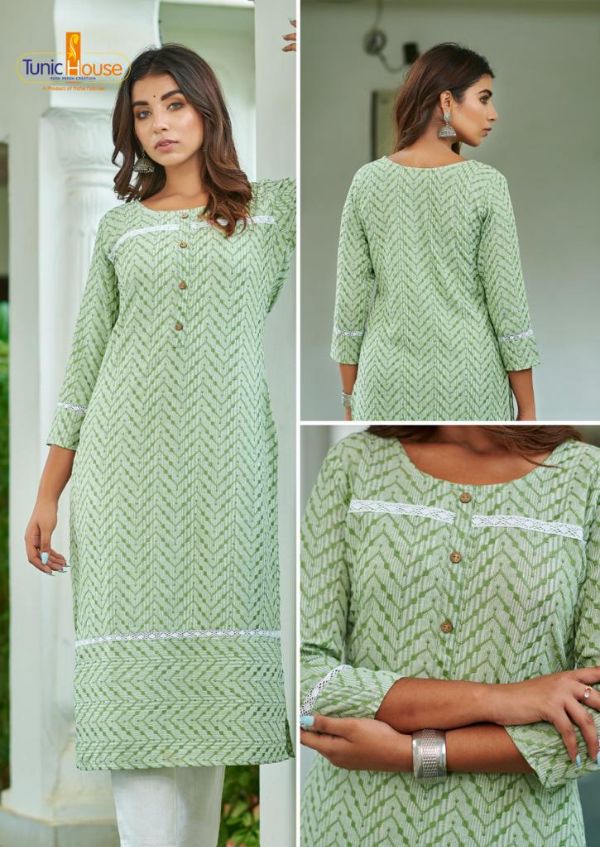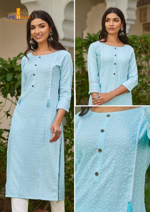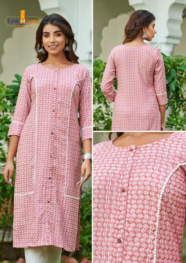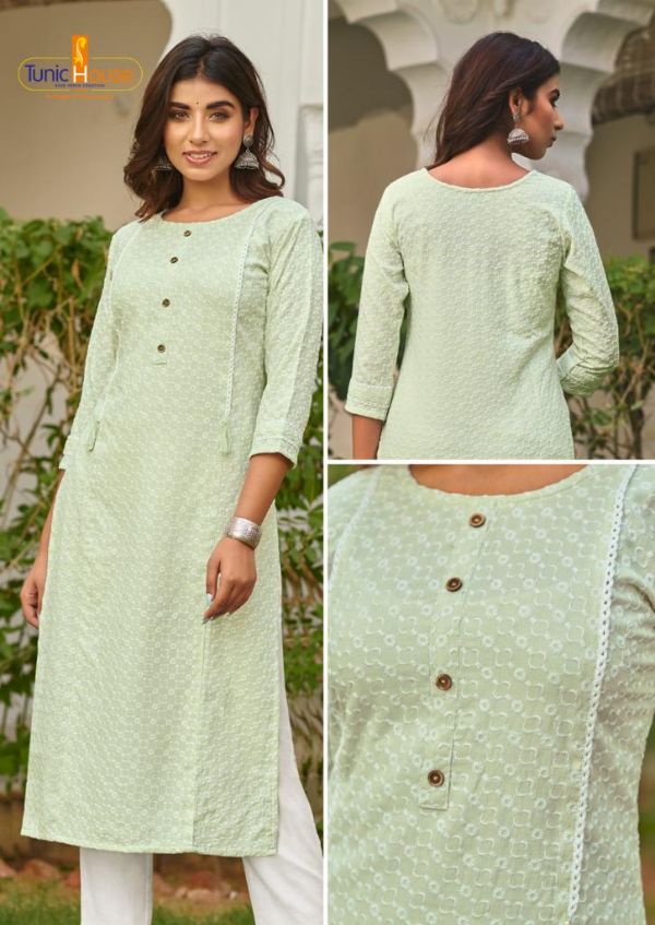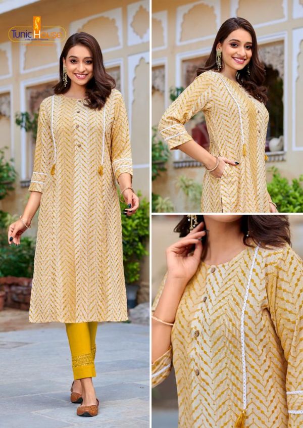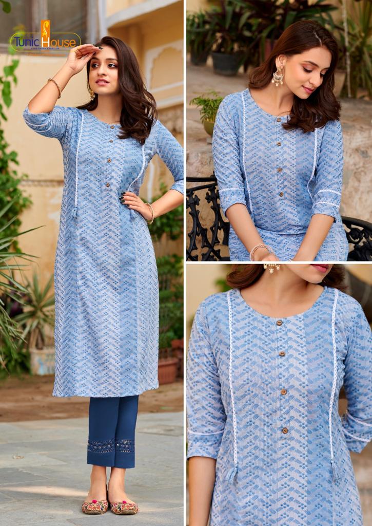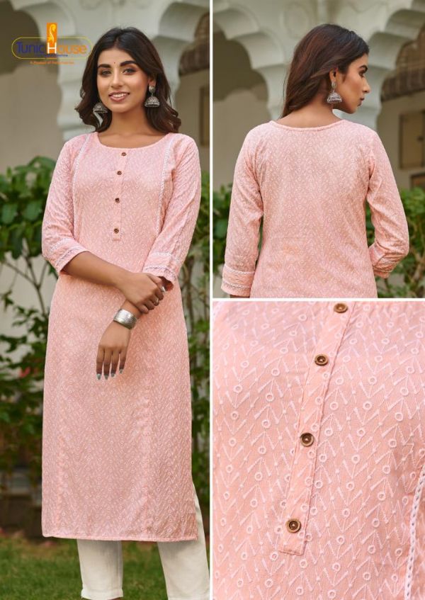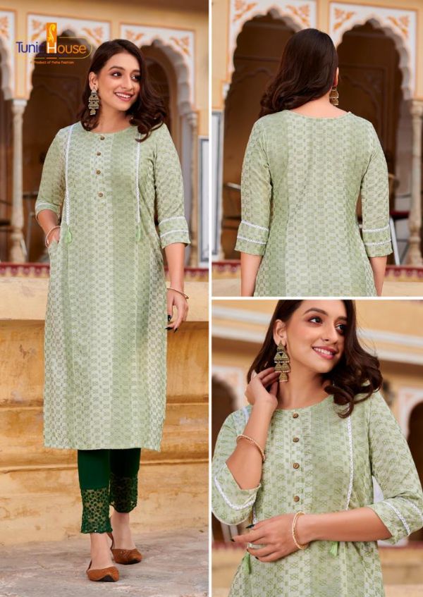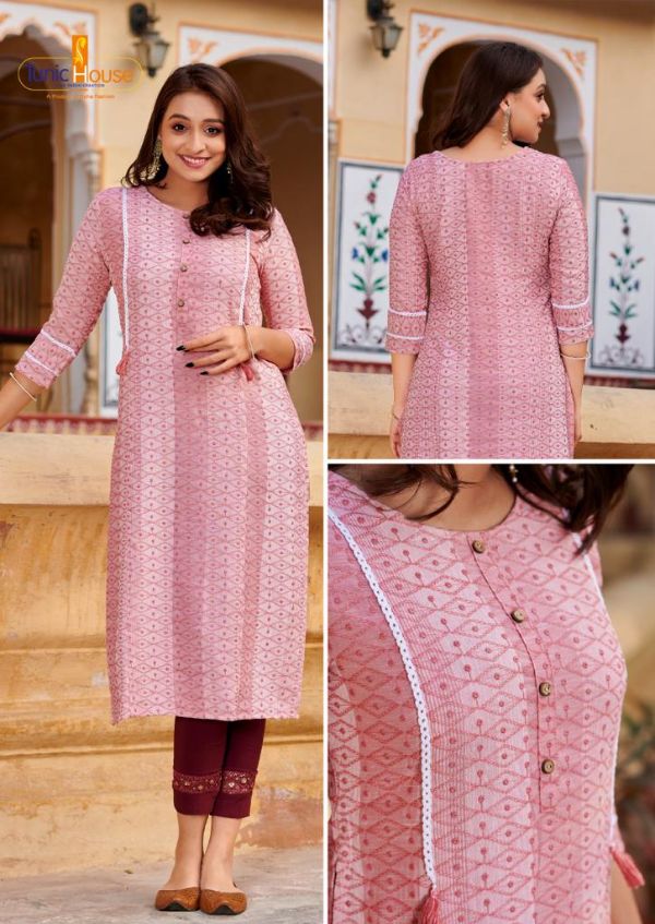 Tunic House Presents Super Star Lucknowi Rayon With Self Bended Kurti Collection