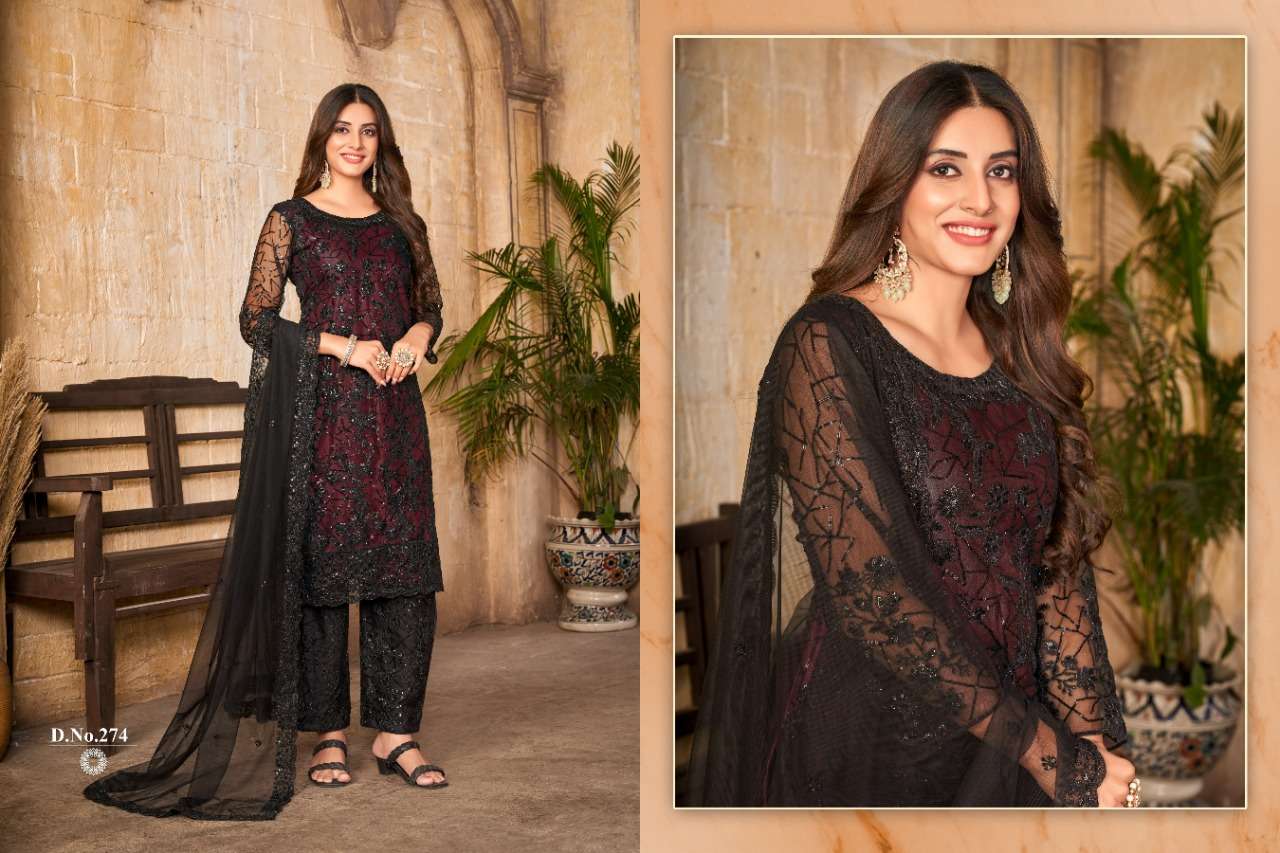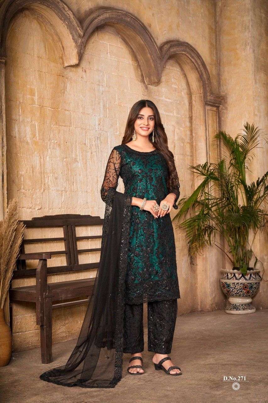 TWISHA PRESENTS VAANI VOL-27 271 TO 274 SERIES NET WITH SEQUENCE WORK SALWAR SUITS COLLECTION AT WHOLESALE RATES N387