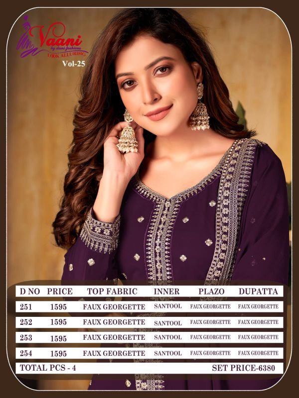 Vaani Presents Vol-25 251 To 254 Series Georgette Embroidered Salwar Suits At Wholesale Price