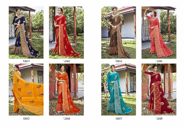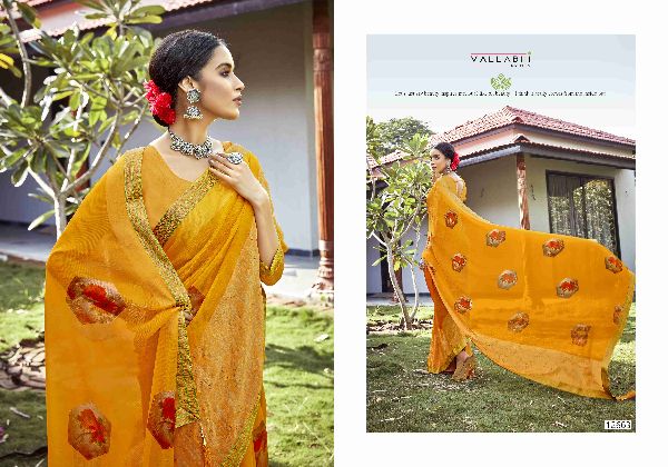 Vallabhi Presents Tamanna 12661-12668 Series Brasso With Floral Printed, Foil Embellished Saree Collection