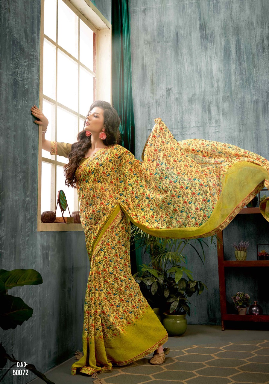 Vallabhi Prints Presents Leaf 50071 - 50078 Series Fancy Chiffon Print With Beautiful Colours Casual Wear Saree Collection