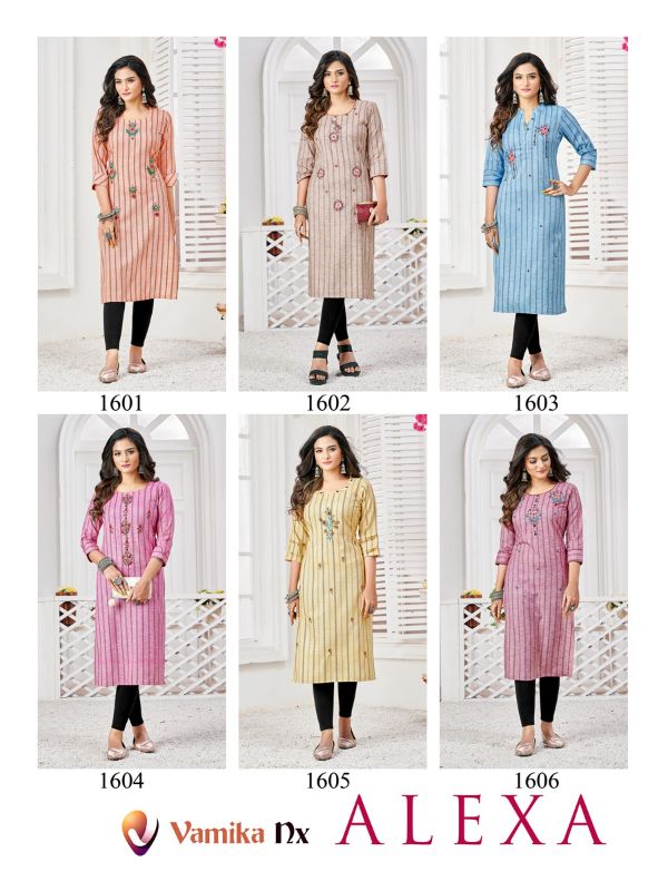 Vamika Nx Presents Alexa 1601-1606 Series Premium Cotton Kurti Collection
