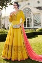 Latest Designer gown Collection. Exclusive with Foil & Thread Embroidery Work gives a Fashionable Look, High sensed style and luxury makes you ready for envious glazes and very rich & Royal in the Party, Function, Event etc.