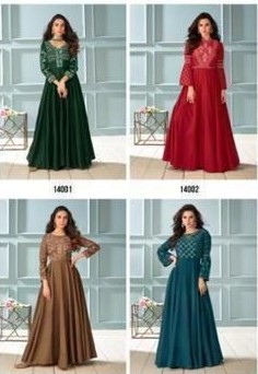 Latest Designer gown Collection. Exclusive with Foil & Thread Embroidery Work gives a Fashionable Look, High sensed style and luxury makes you ready for envious glazes and very rich & Royal in the Party, Function, Event etc.