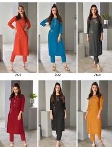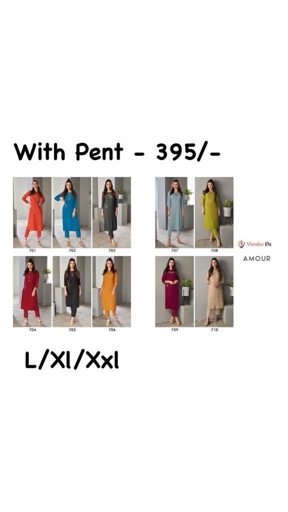 Vamika Presents Amour 701-710 Series Fancy Kurti With Pent Collection