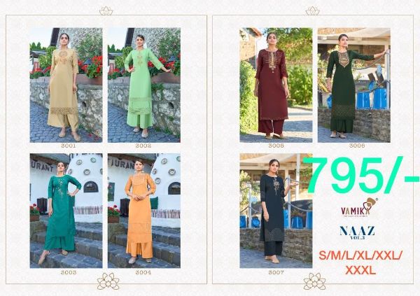 Vamika Presents Naaz Vol-3 3001-3007 Series Fancy Kurti With Plazzo Collection