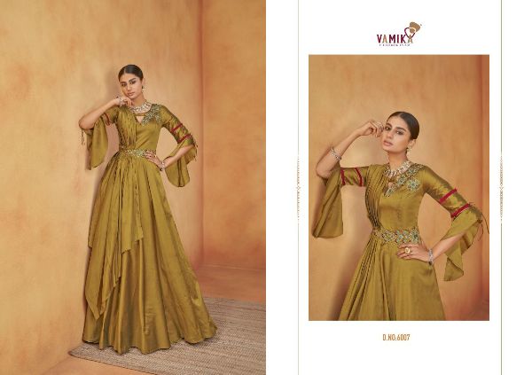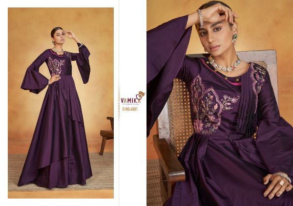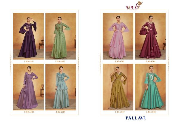 Vamika Presents Pallavi Vol-1 6001-6008 Series Soft Tapeta Silk Long Party Wear Gown Collection