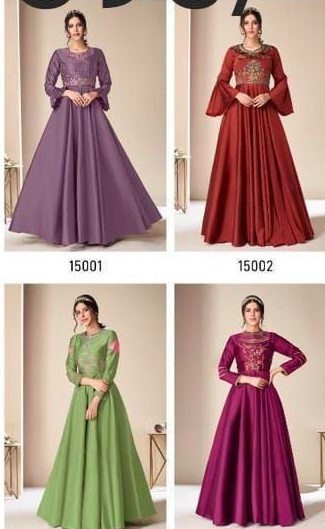 Latest Designer gown Collection. Exclusive with Foil & Thread Embroidery Work gives a Fashionable Look, High sensed style and luxury makes you ready for envious glazes and very rich & Royal in the Party, Function, Event etc.