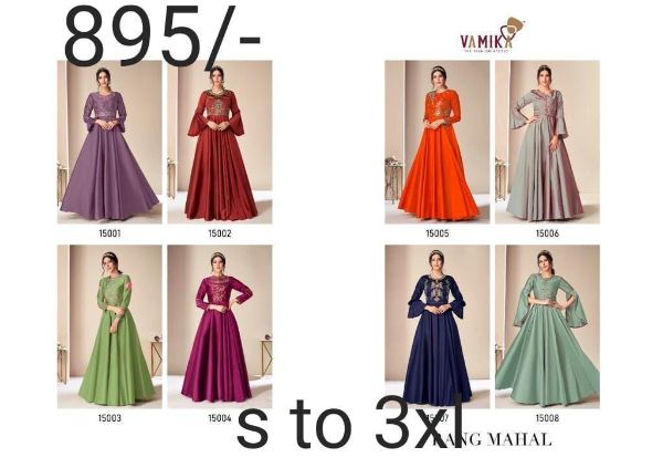 Vamika Presents Rang Mahal 15001 - 15008 Series Tapeta Silk With Heavy Malai Work Beautiful Designer Party Wear Long Gown Collection