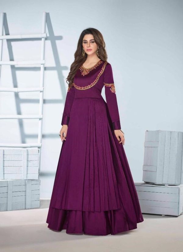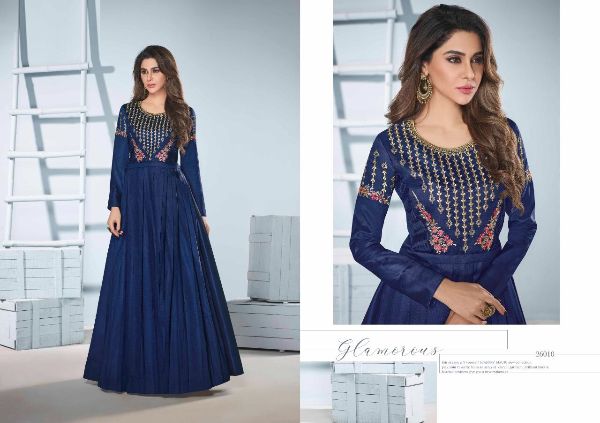 Latest Designer gown Collection. Exclusive with Foil & Thread Embroidery Work gives a Fashionable Look, High sensed style and luxury makes you ready for envious glazes and very rich & Royal in the Party, Function, Event etc.
