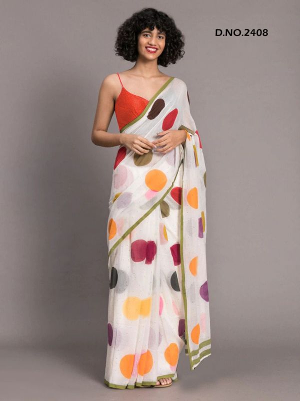 Latest Designer sraee Collection. Exclusive with Foil & Thread Embroidery Work gives a Fashionable Look, High sensed style and luxury makes you ready for envious glazes and very rich & Royal in the Party, Function, Event etc.