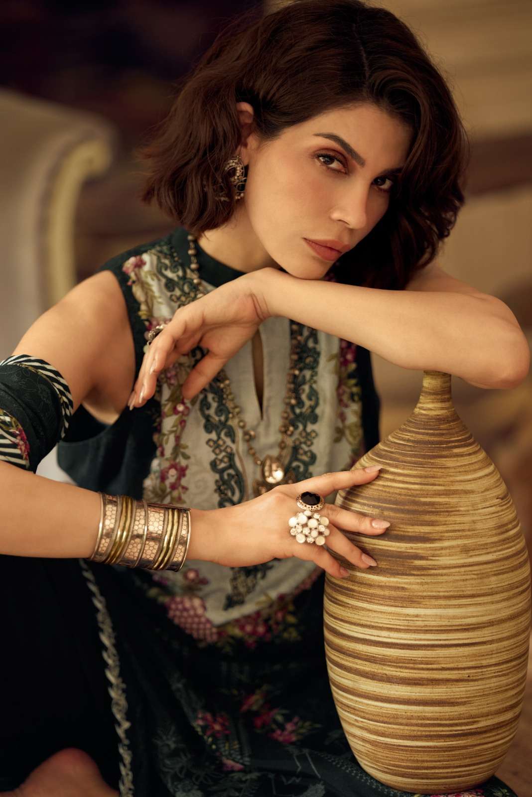 | Work : | embroidered,sequence work,thread embroidery,digital print,designer border |