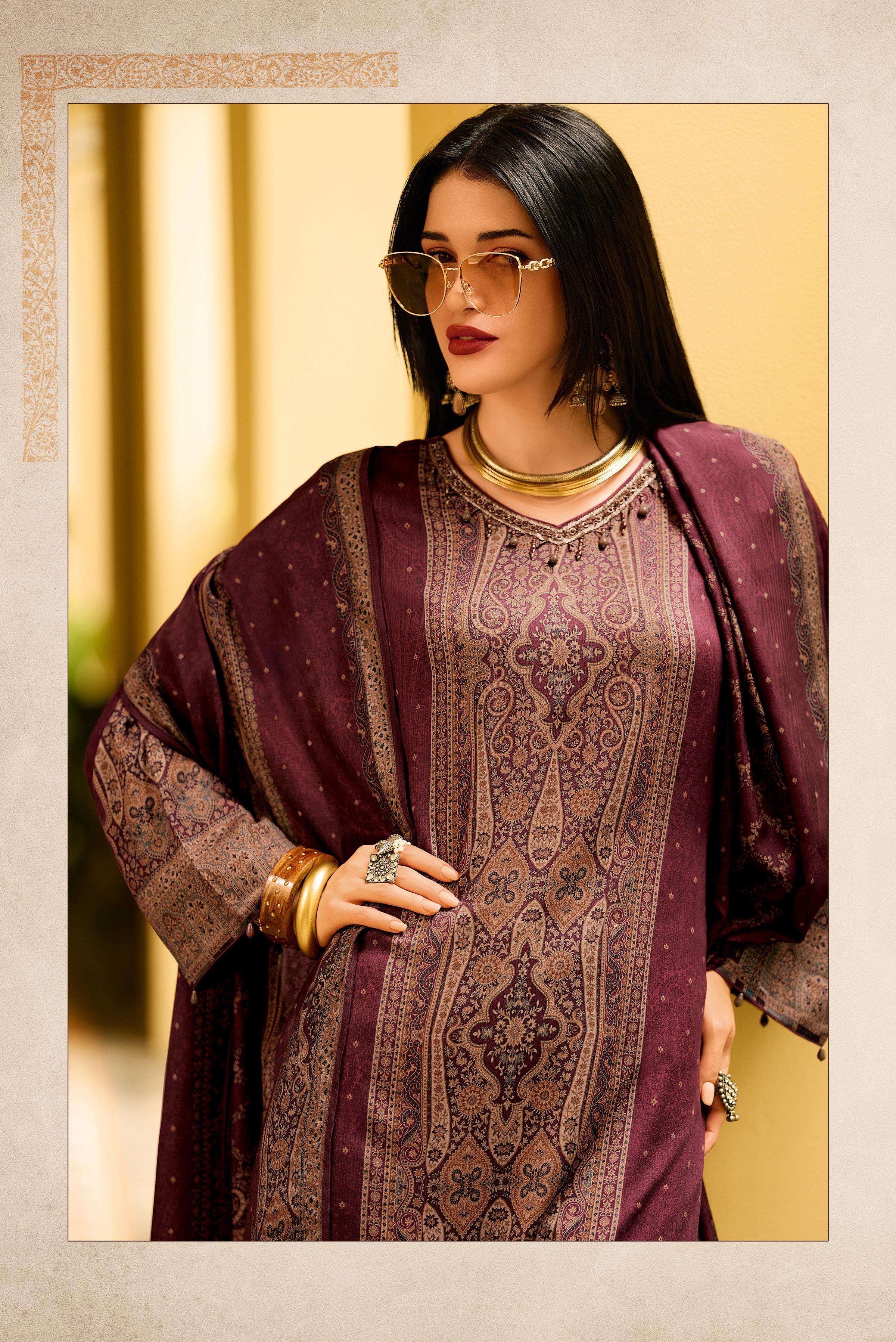 | Catalogue: | VARSHAA KILLIAN VISCOSE PASHMINA SATIN DIGITALLY PRINTED SUIT WITH HANDWORK |