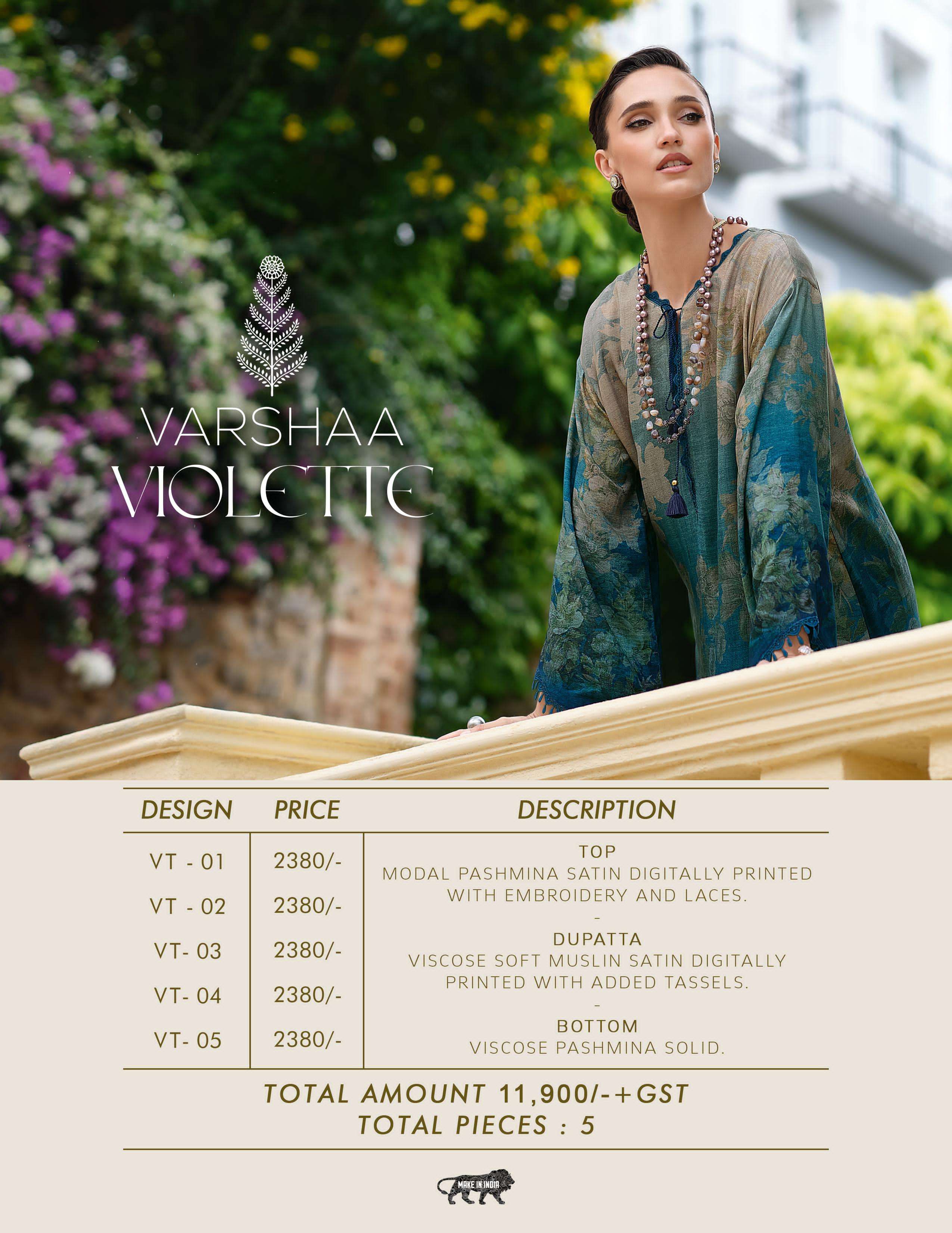 | Catalogue: | VARSHAA VIOLETTE MODAL PASHMINA SATIN DIGITALLY PRINTED SUIT |
