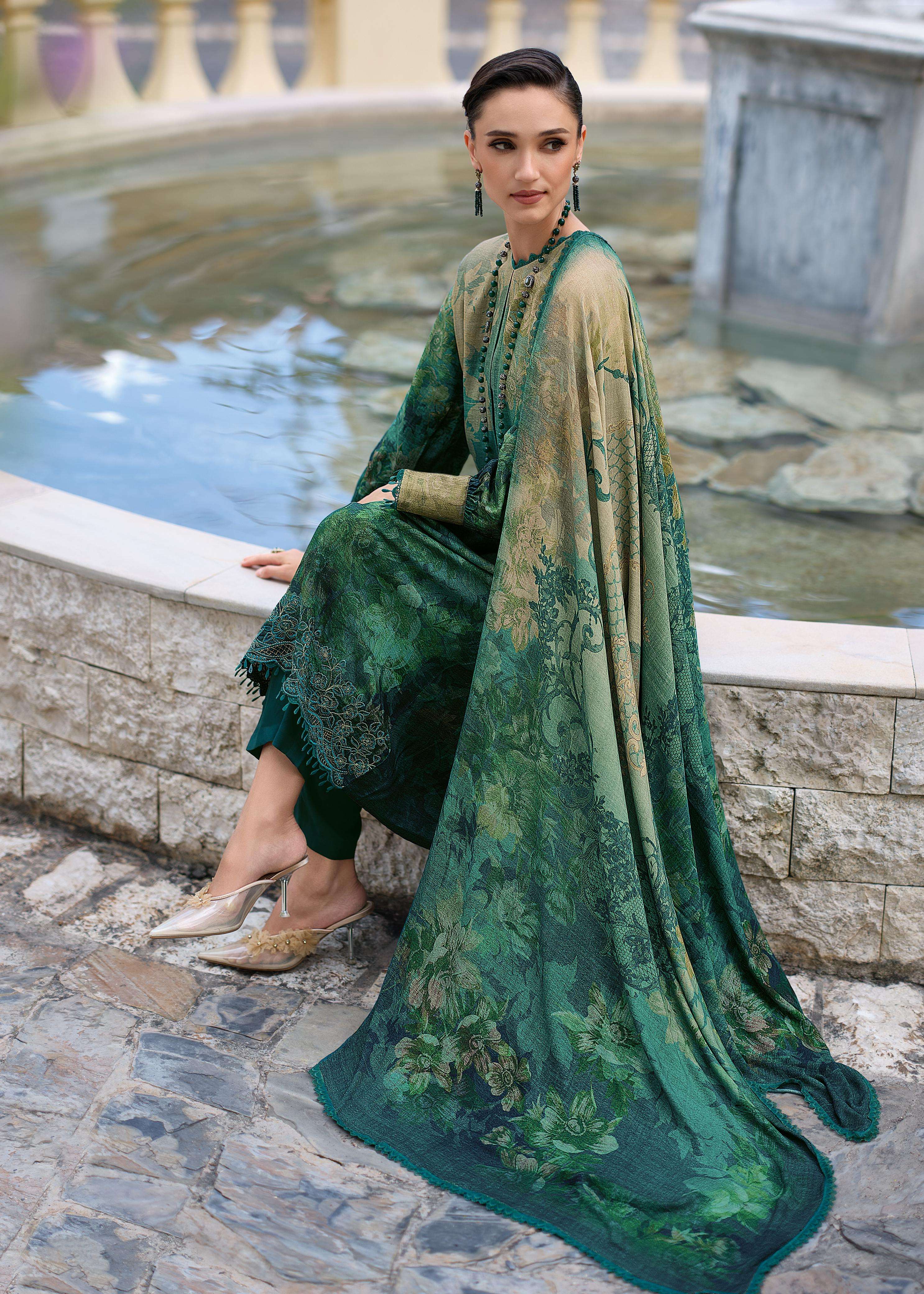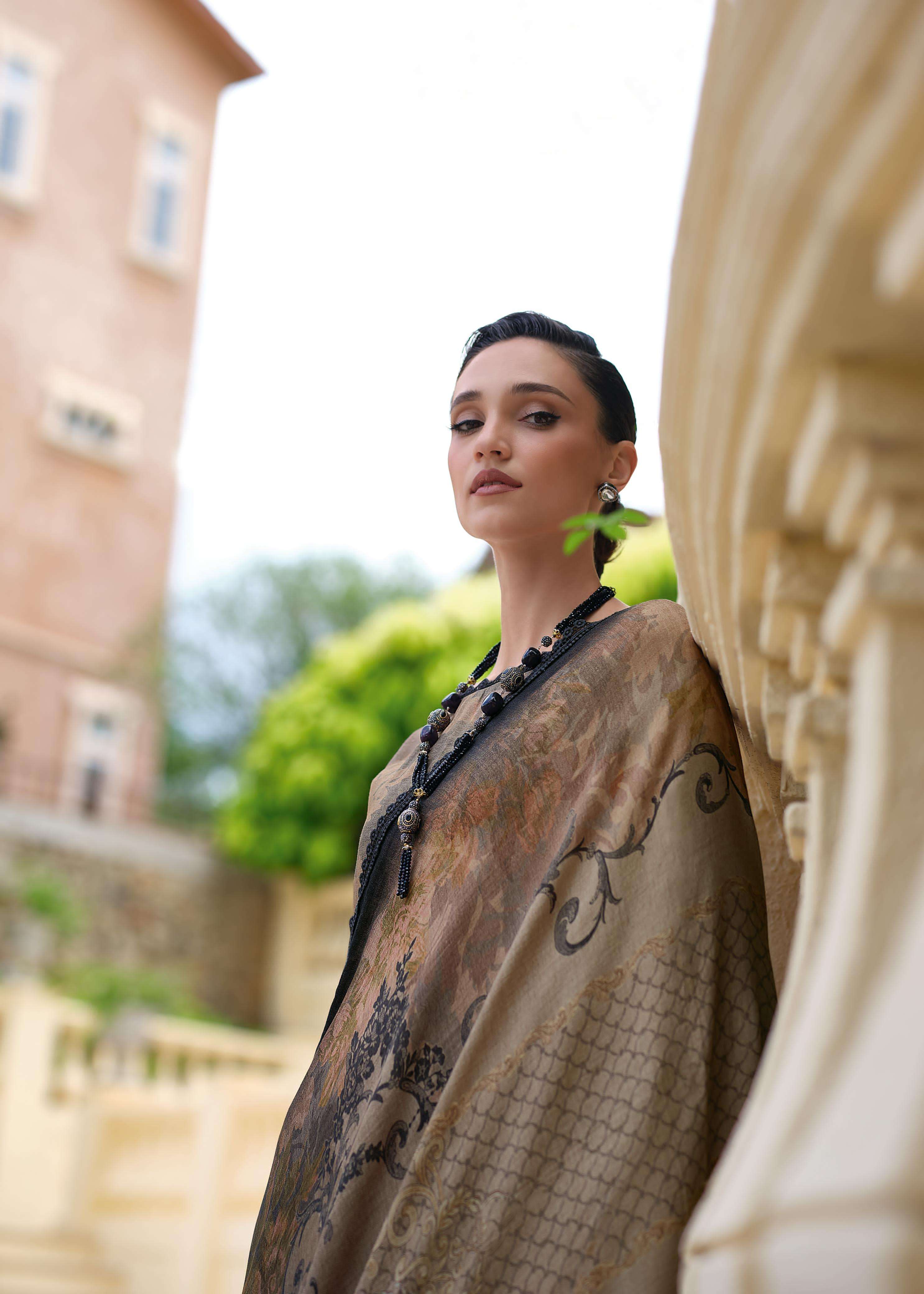 MODAL PASHMINA SATIN DIGITALLY PRINTED WITH EMBROIDERY AND LACES.