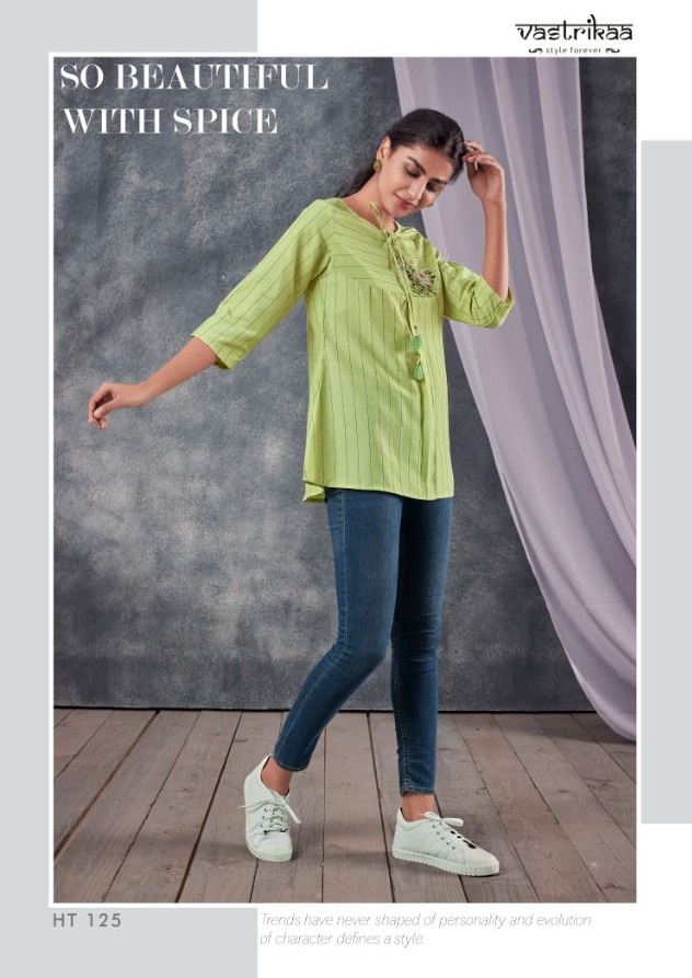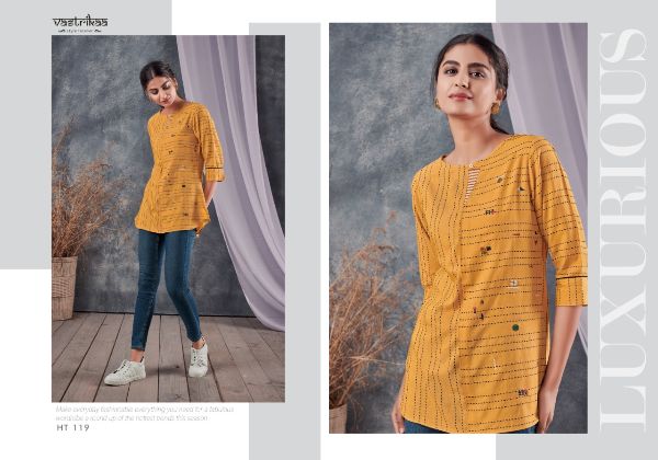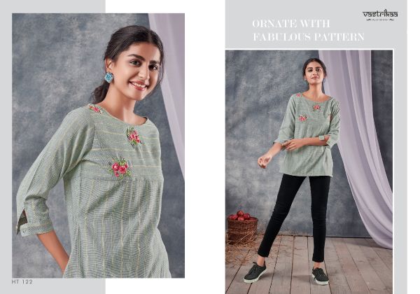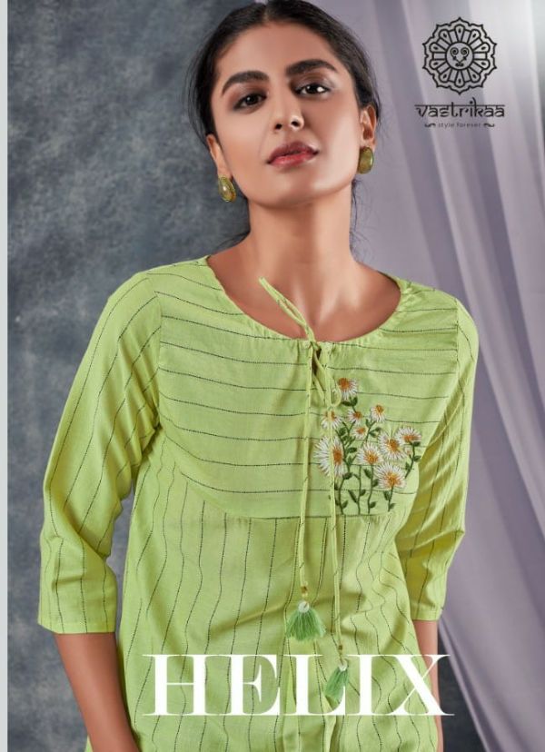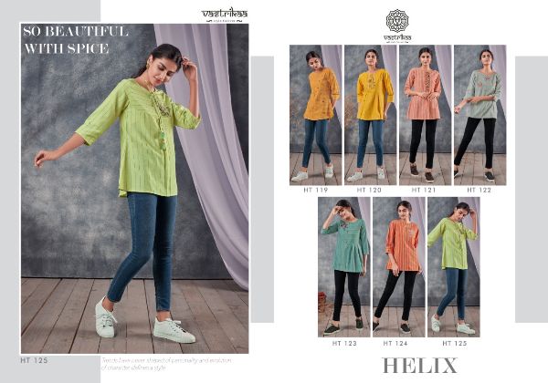 Vastrikaa Presents Helix 119 - 125 Series Fancy Fabrics With Embroidery & Accessories Tops Collection