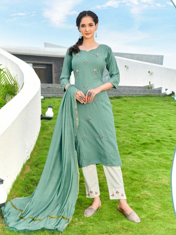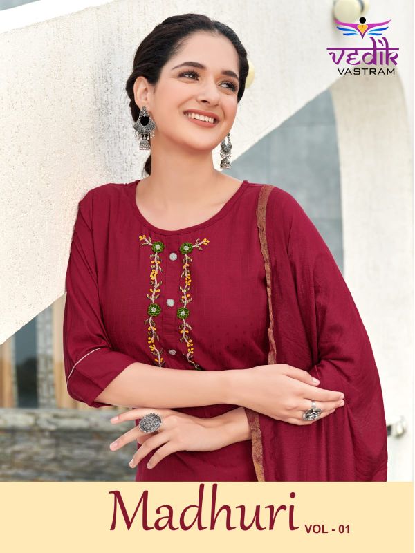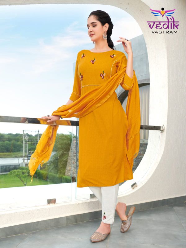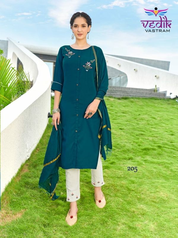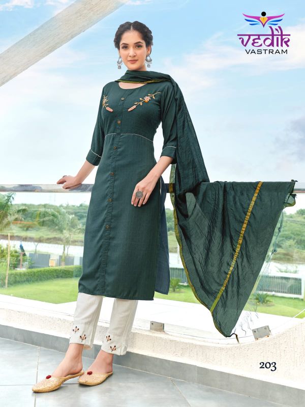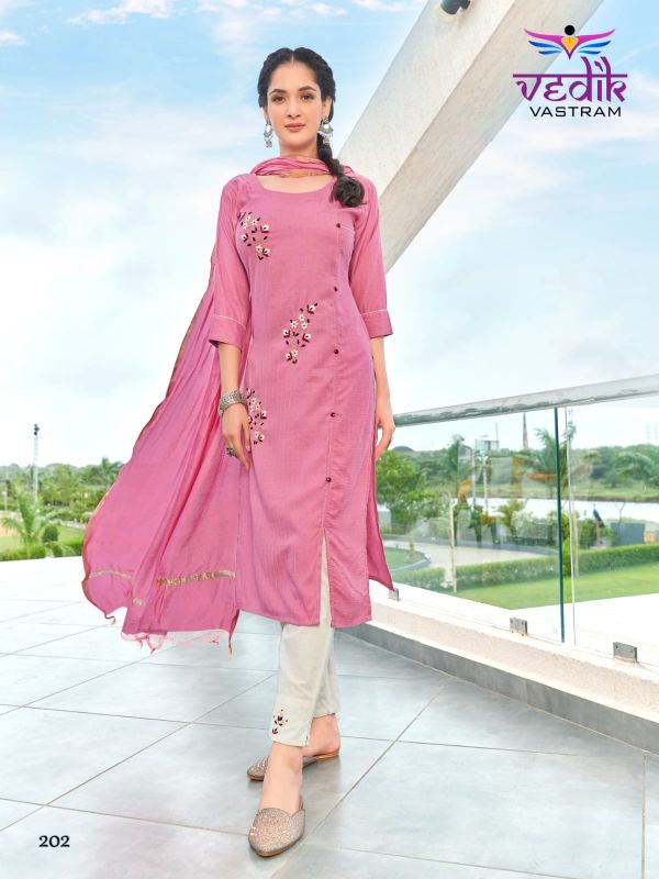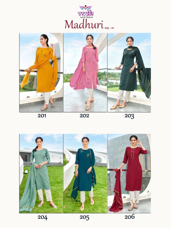 Vedik Vastram Presents Madhuri Vol-1 201 - 206 Series Pure Viscose With Cotton Doriya Dobby With Stripe And Hand Work Fancy Salwar Kameez Collection
