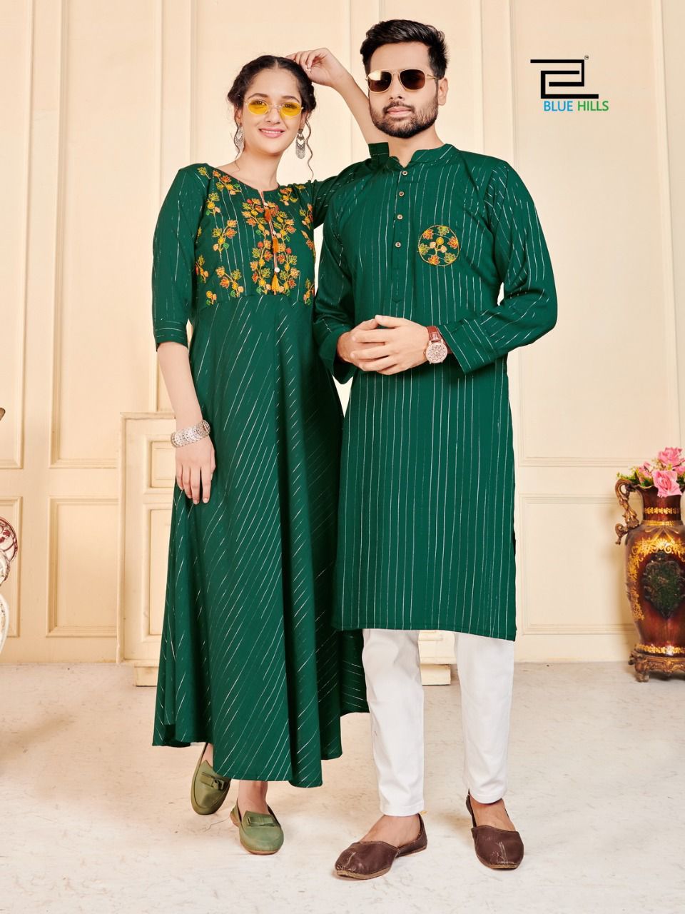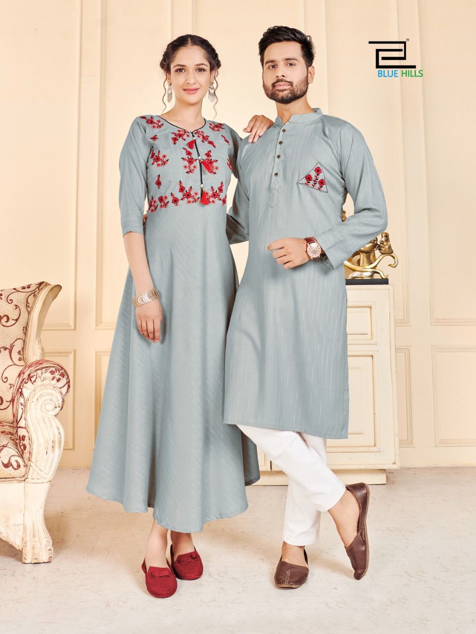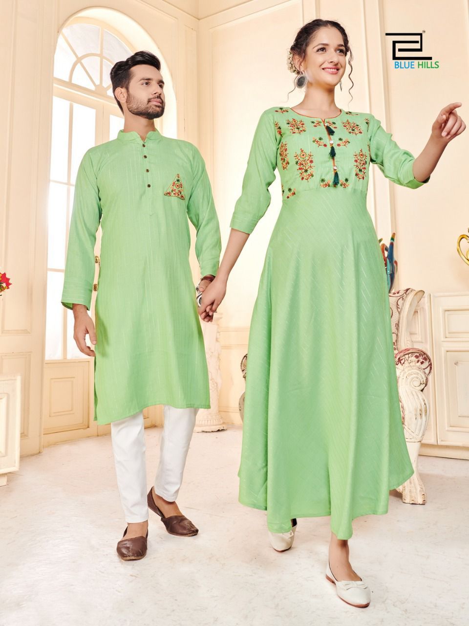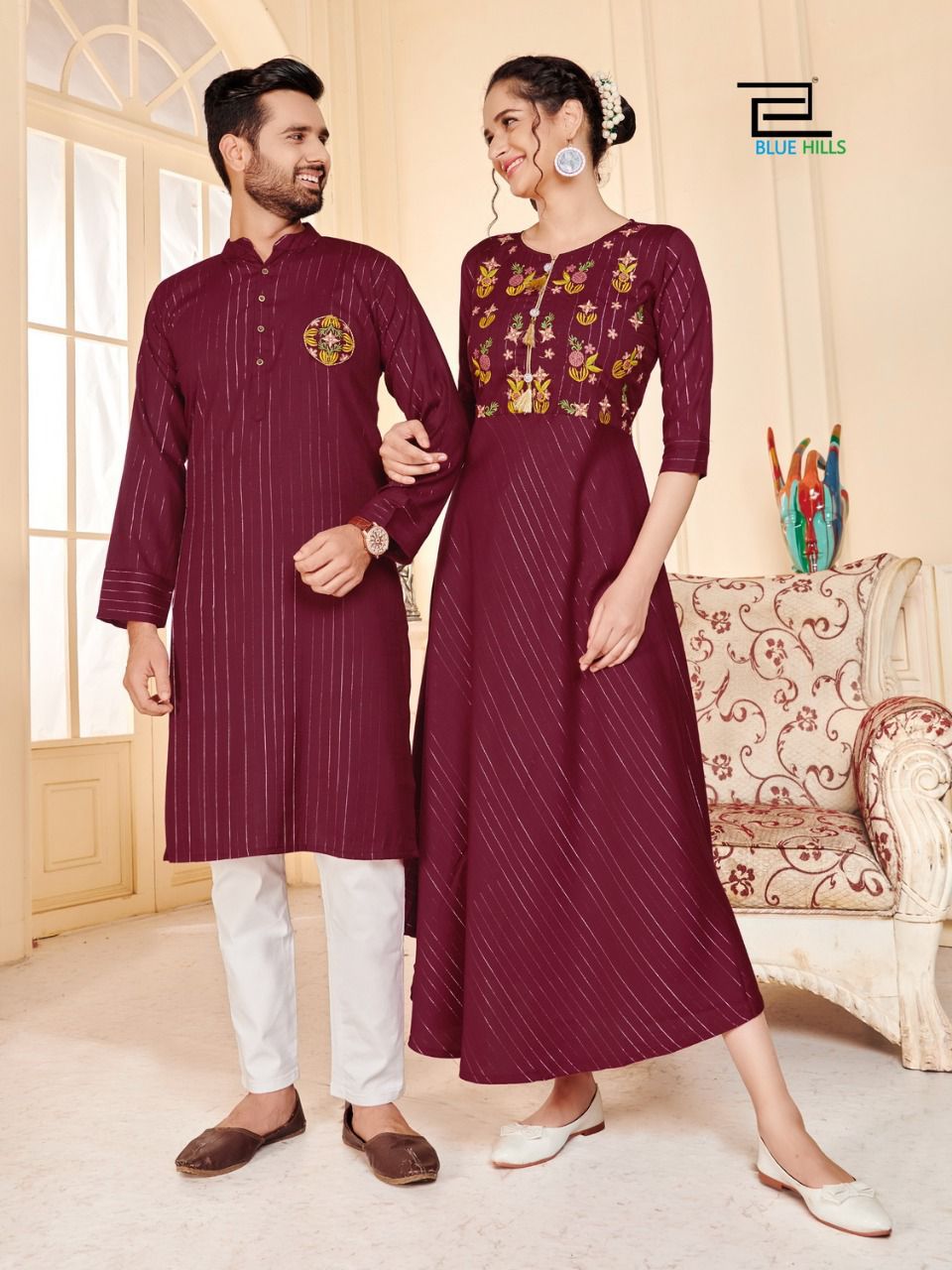 Latest Designer couple combo Collection. Exclusive with Embroidery Work gives a Fashionable Look, High sensed style and luxury makes you ready for envious glazes and very rich & Royal in the Party, Function, Event etc.