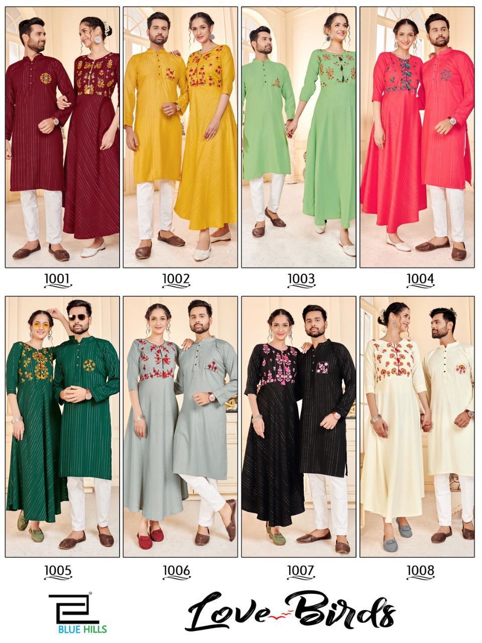 Vee Fab Presents Love Birds 1001 - 1008 Series Pure Rayon With Embroidery Work Attractive Colour Combination Fancy Event Wear Couple Combo Collection