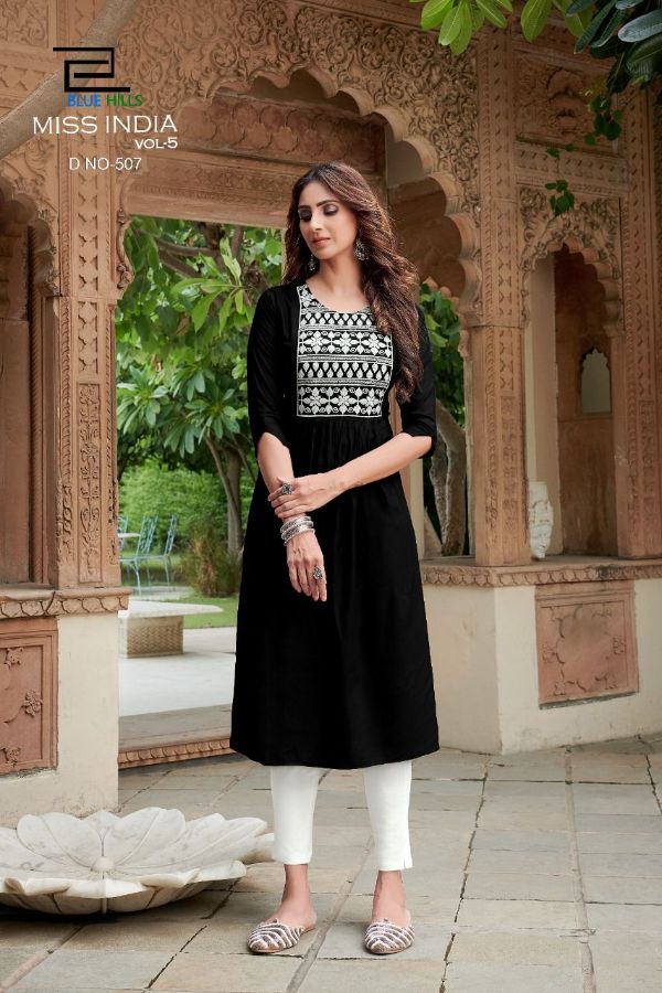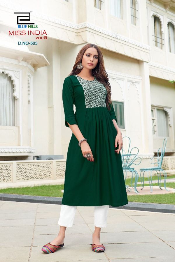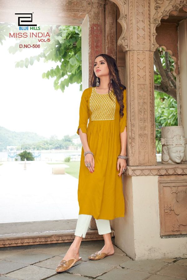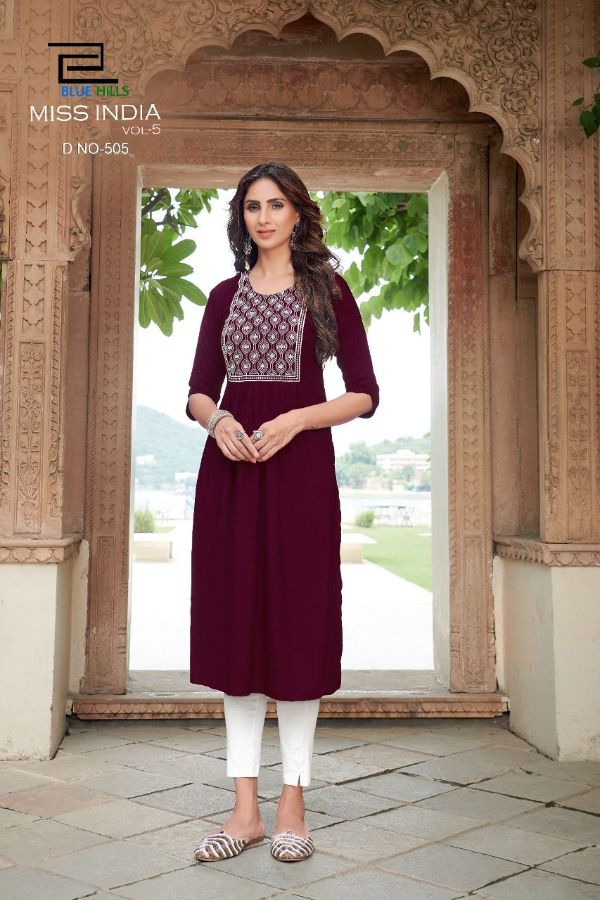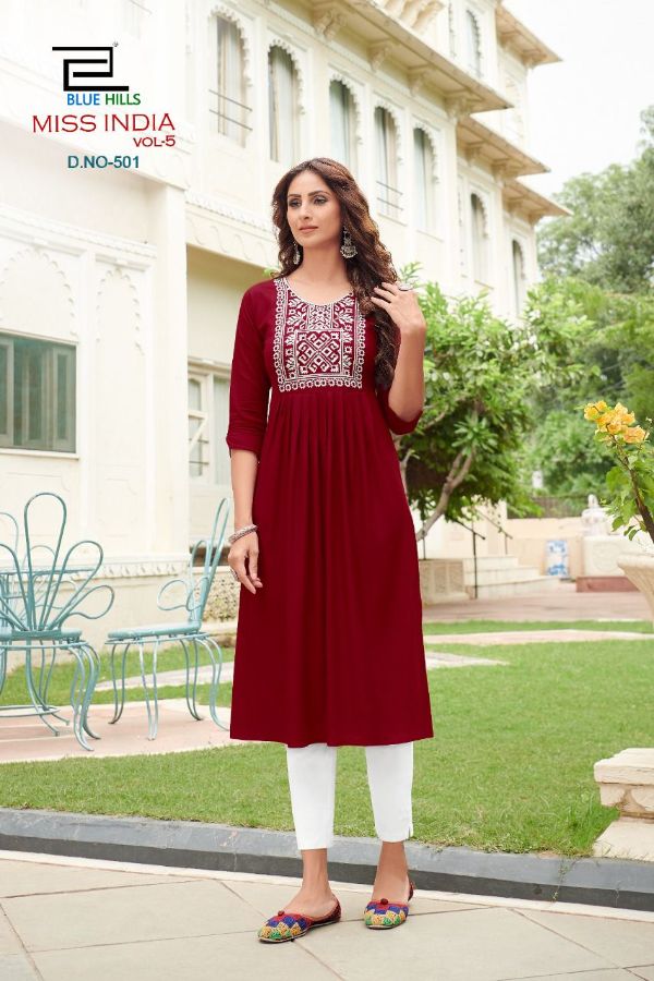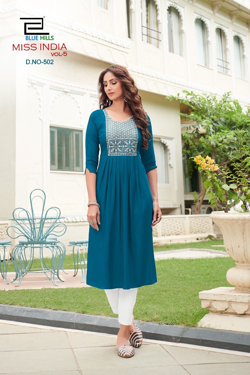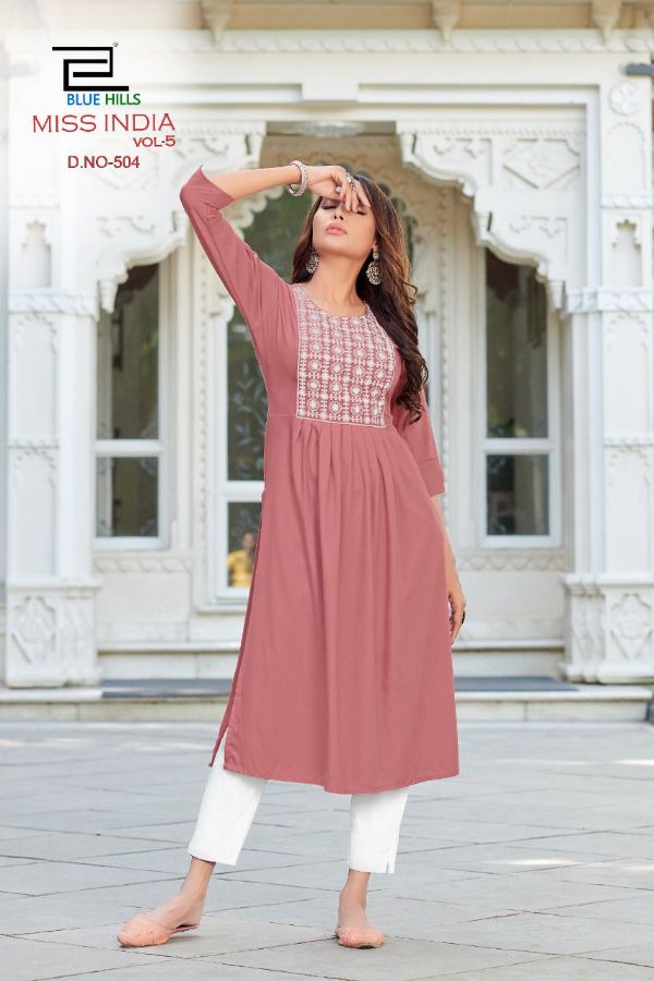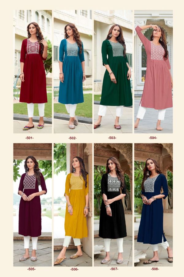 Vee Fab Presents Miss India Vol-5 501-508 Series Rayon With Neck Thread Work Kurti Collection