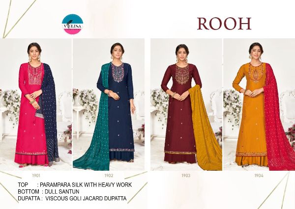 Velisha Presents Rooh 1901-1904 Series Parampara Silk With Heavy Embroidery Work Fancy Salwar Kameez Collection
