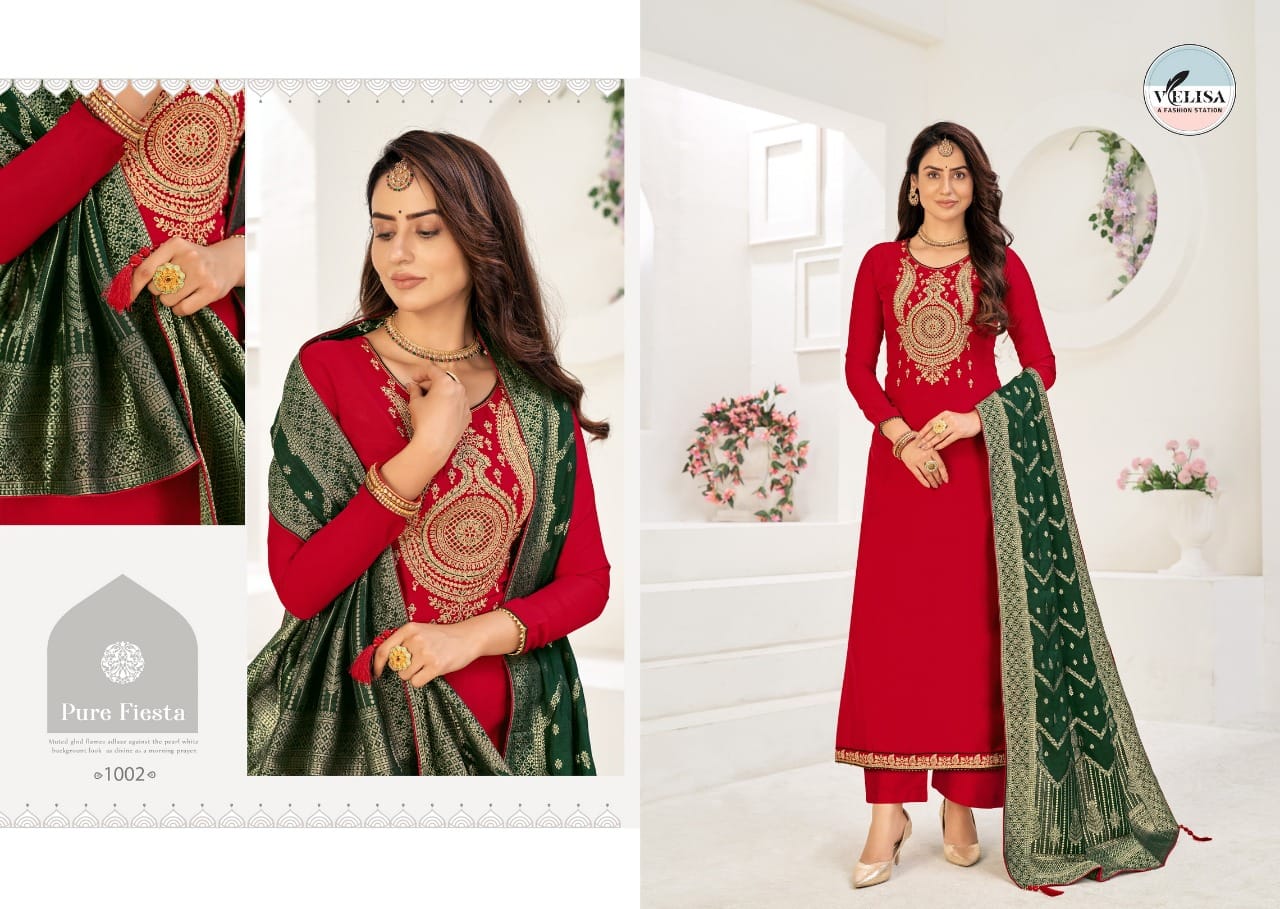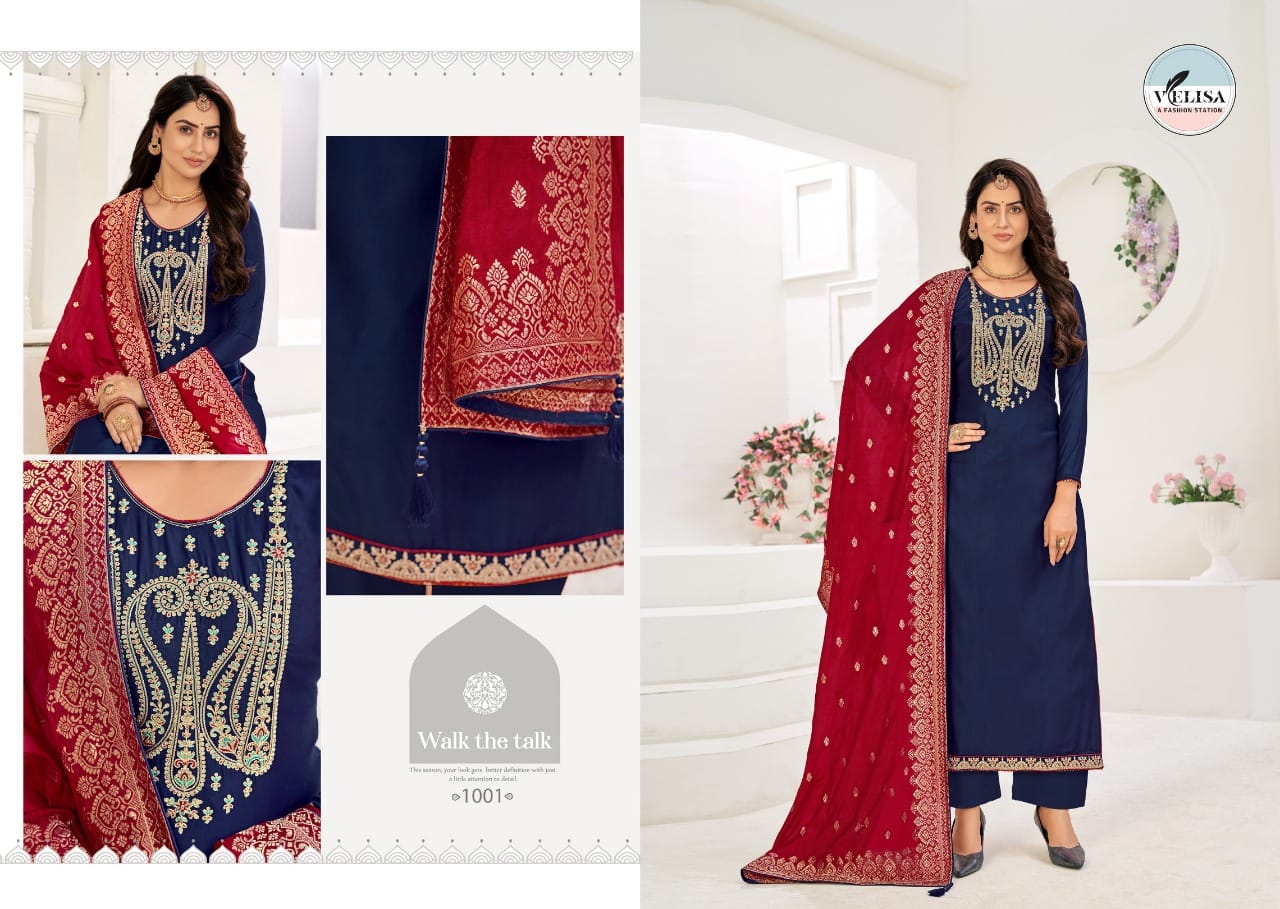 Velisha Presents Saaz 1001 - 1004 Series Parampara Silk With Heavy Embroidery Coding Work Beautiful Festival Wear Salwar Suit Collection