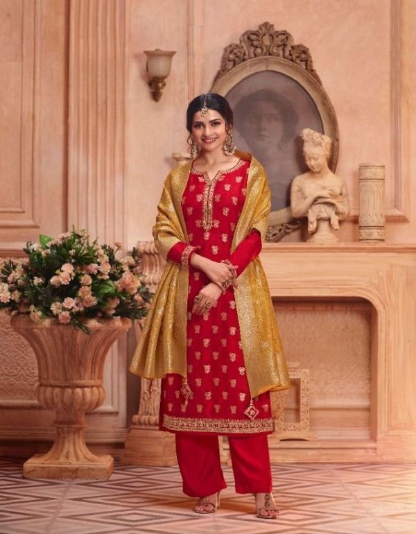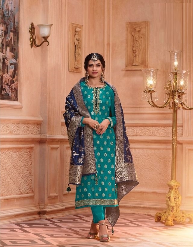 Vinay Kasheesh-zardosi Presents 13741 To 13746 Designer Double Zari Weaving Women Pure Dola Jacquard Fancy Festival Wear Pant Suit Collection