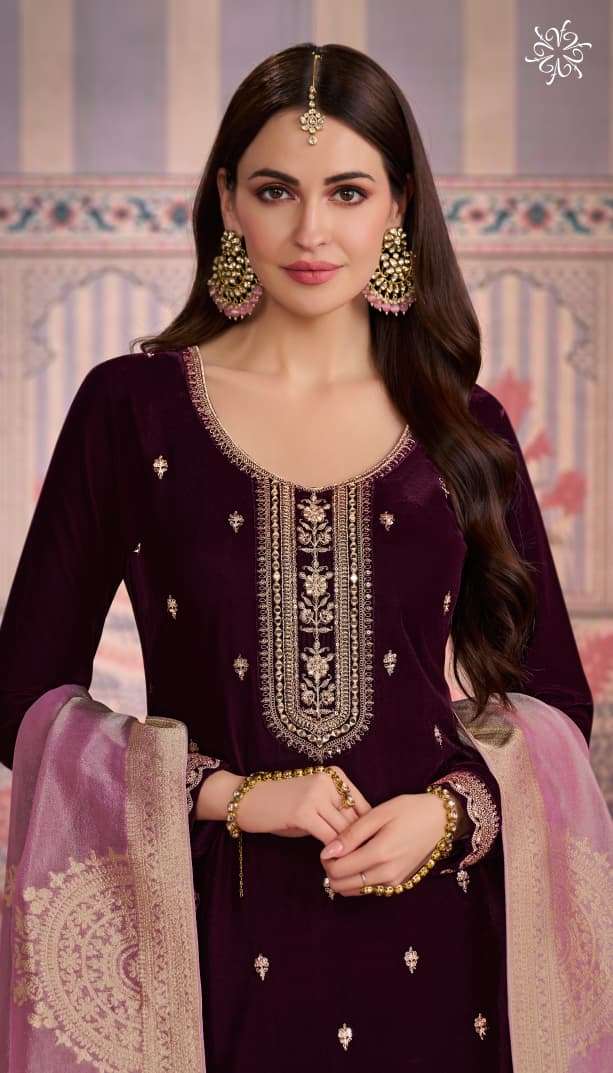 | Catalogue: | Vinay KULEESH KAVERI Premium Embroidered Velvet Suit With Mirror Work |
