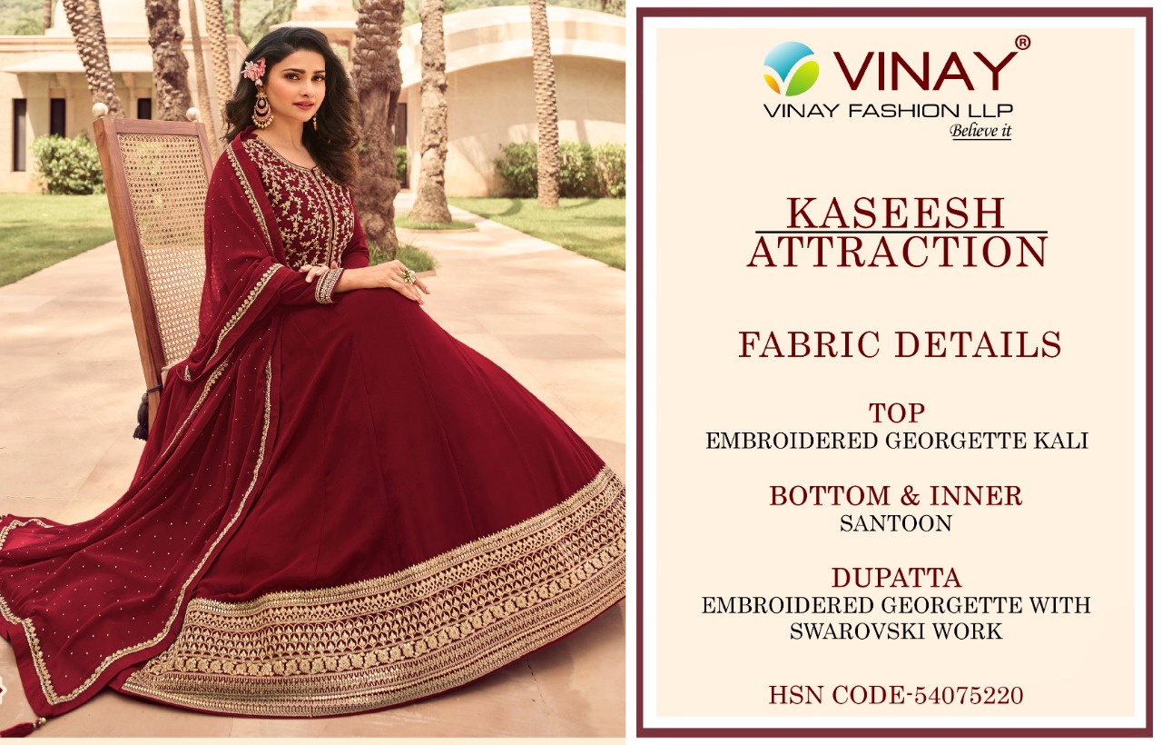 Vinay Presents Kassesh Attraction 14821 - 14828 Series Fancy Designer Georgette With Embroidery Work Fancy Party Wear Long Gown Collection
