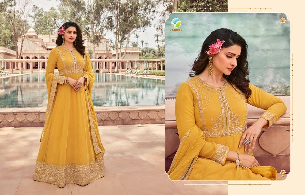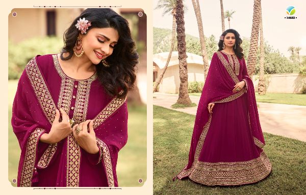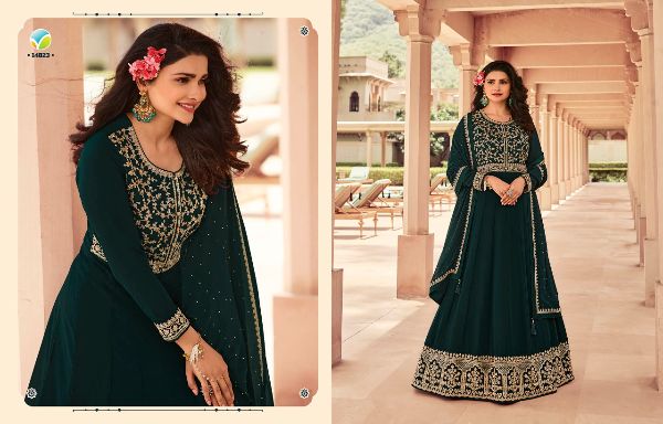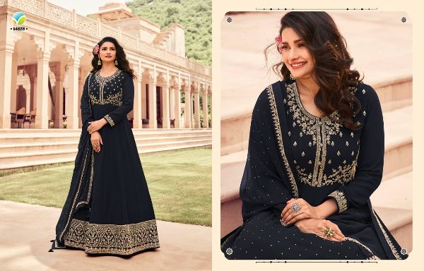 Latest Designer gown Collection. Exclusive with Foil & Thread Embroidery Work gives a Fashionable Look, High sensed style and luxury makes you ready for envious glazes and very rich & Royal in the Party, Function, Event etc.