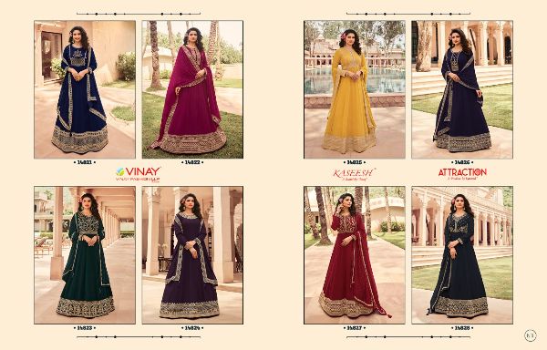 Vinay Presents Kassesh Attraction 14821 - 14828 Series Fancy Designer Georgette With Embroidery Work Fancy Party Wear Long Gown Collection