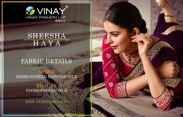 Vinay Presents Sheesha Haya 24001-24008 Series Embroidery Hotstar Silk Saree Collection