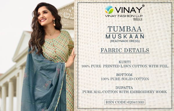 Vinay Presents Tumbaa - Muskaan 39751-39758 Series Pure Mul Cotton With Embroidery Work Salwar Suit Collection
