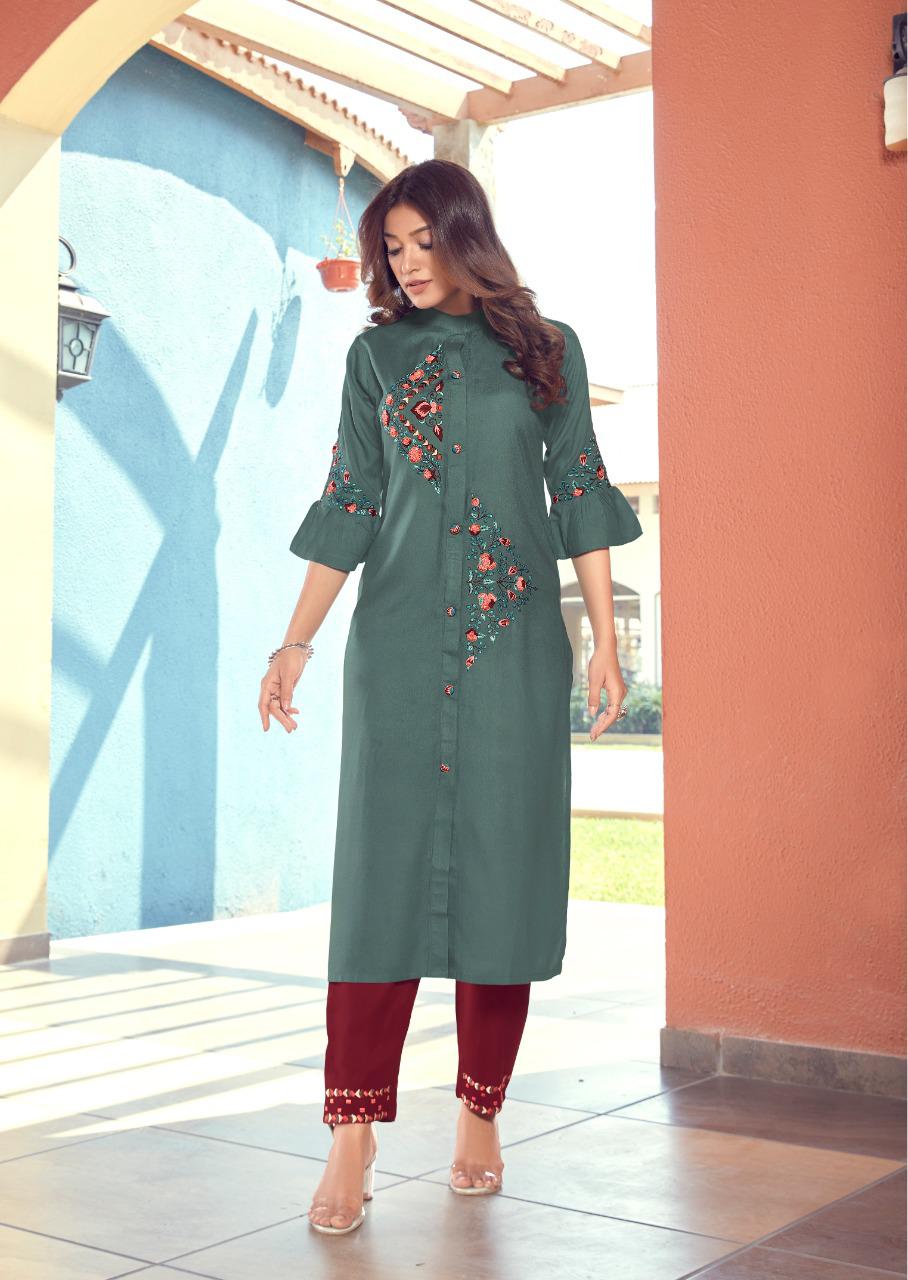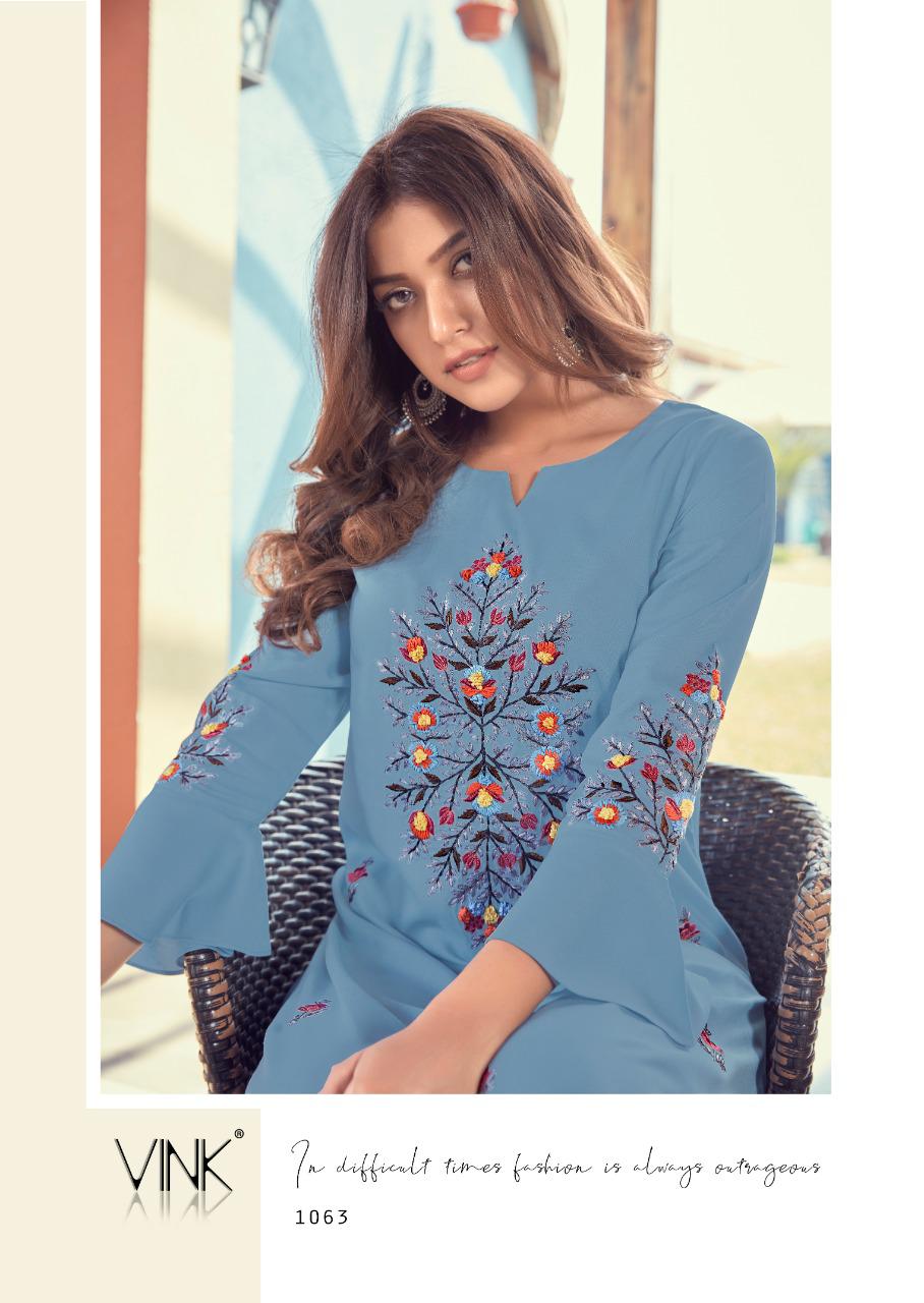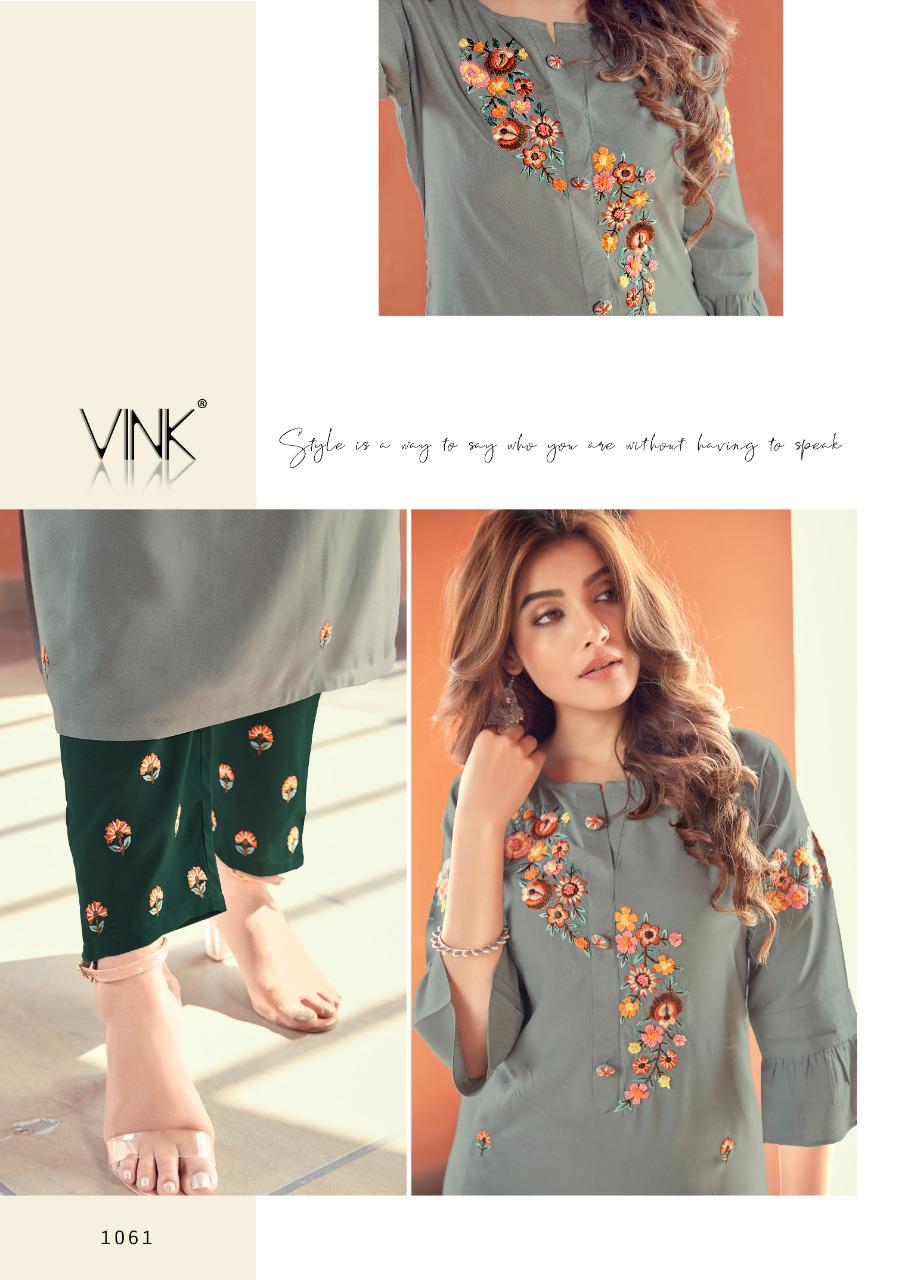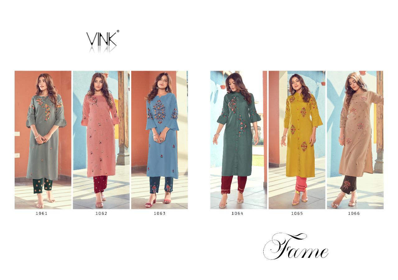Vink Launch Fame 1061-1066 Series Exclusive Rayon Cotton Hand Work Kurtis Collection Online Wholesaler