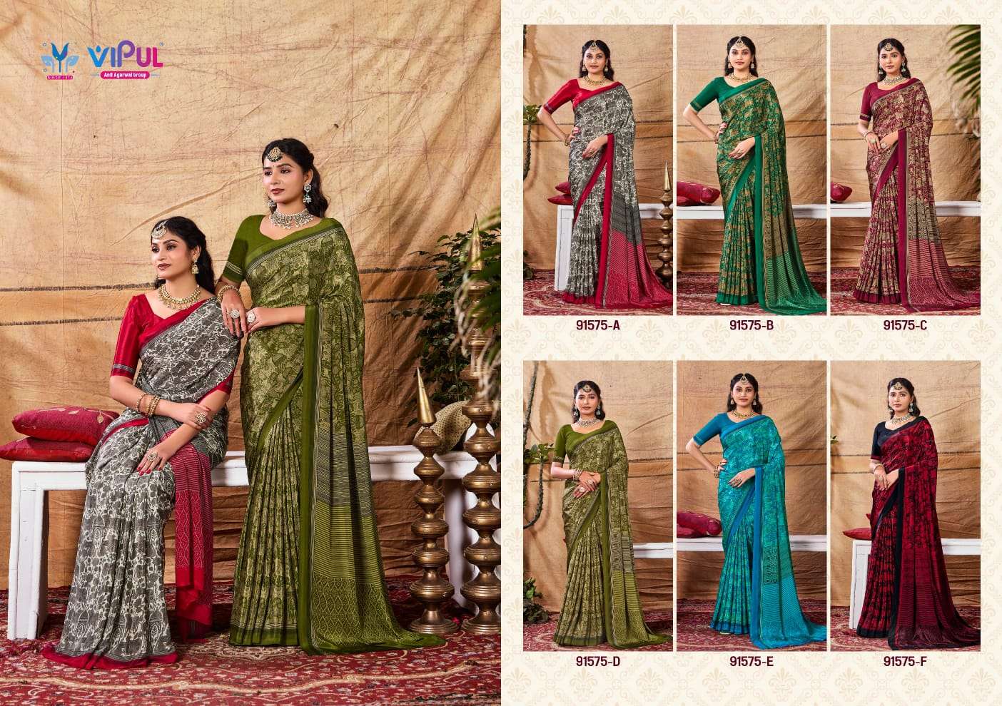 Catalogue: | Vipul Heritage Silk Vol 03 91575A to 91575F Premium Crepe Saree |