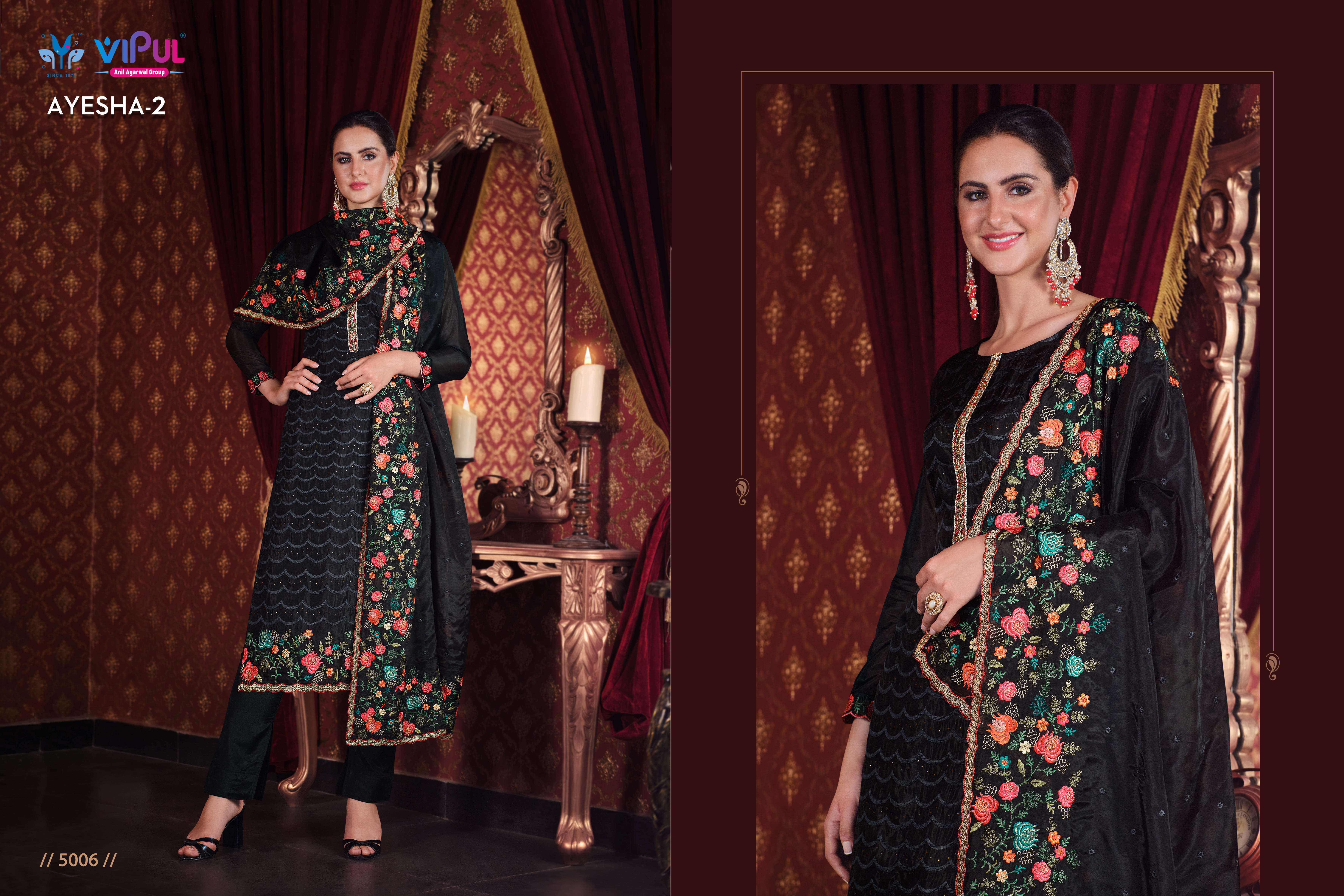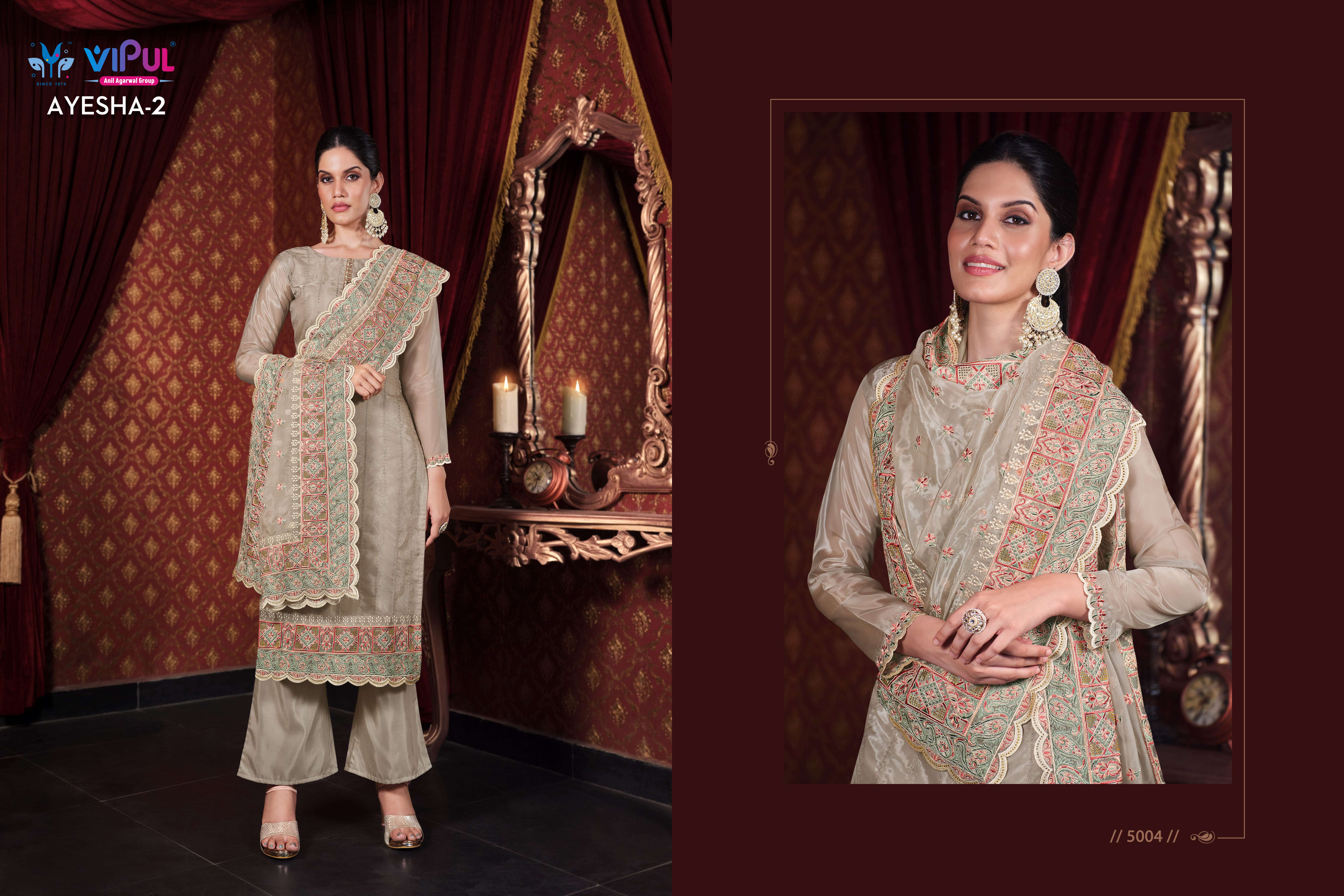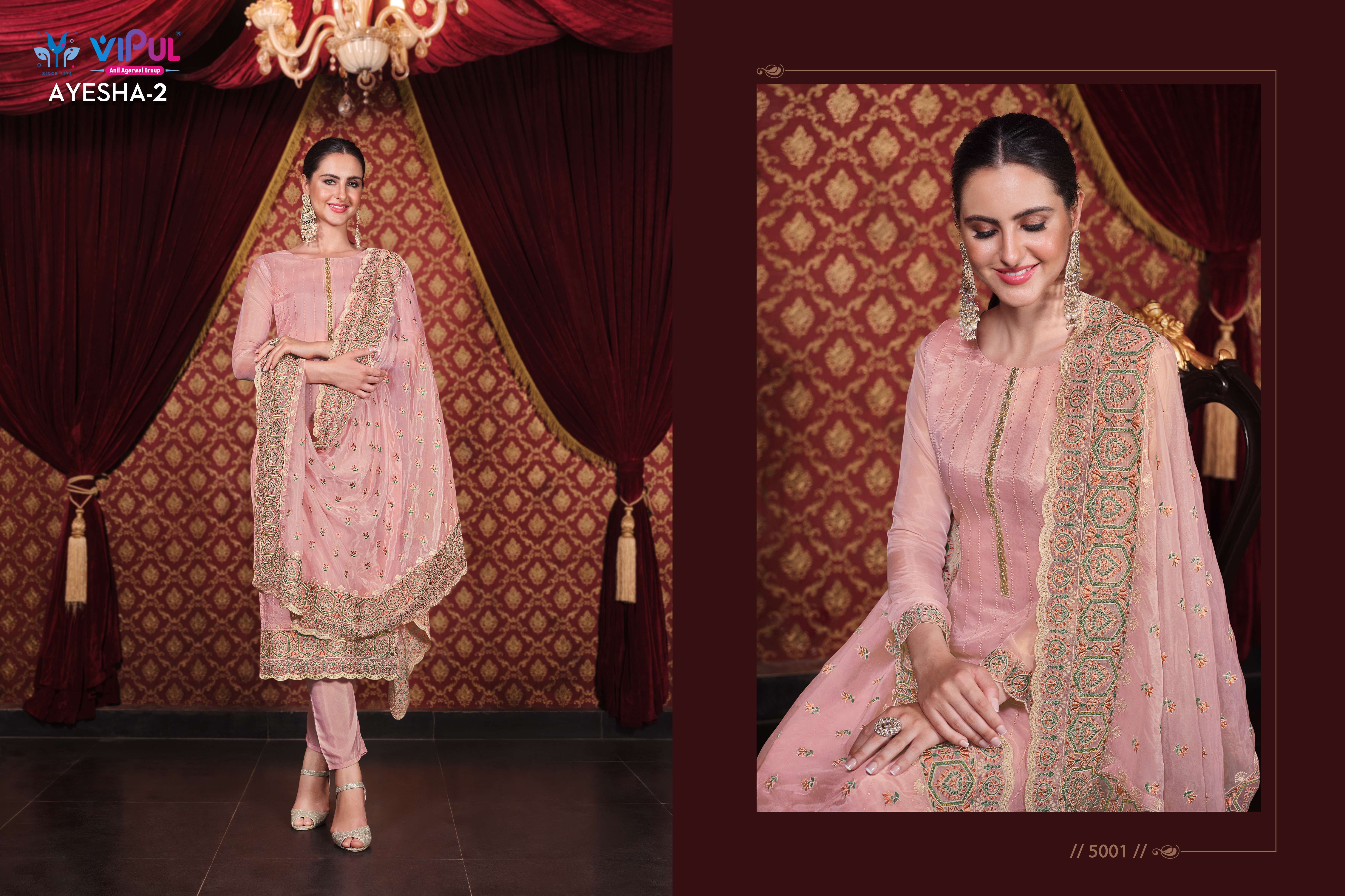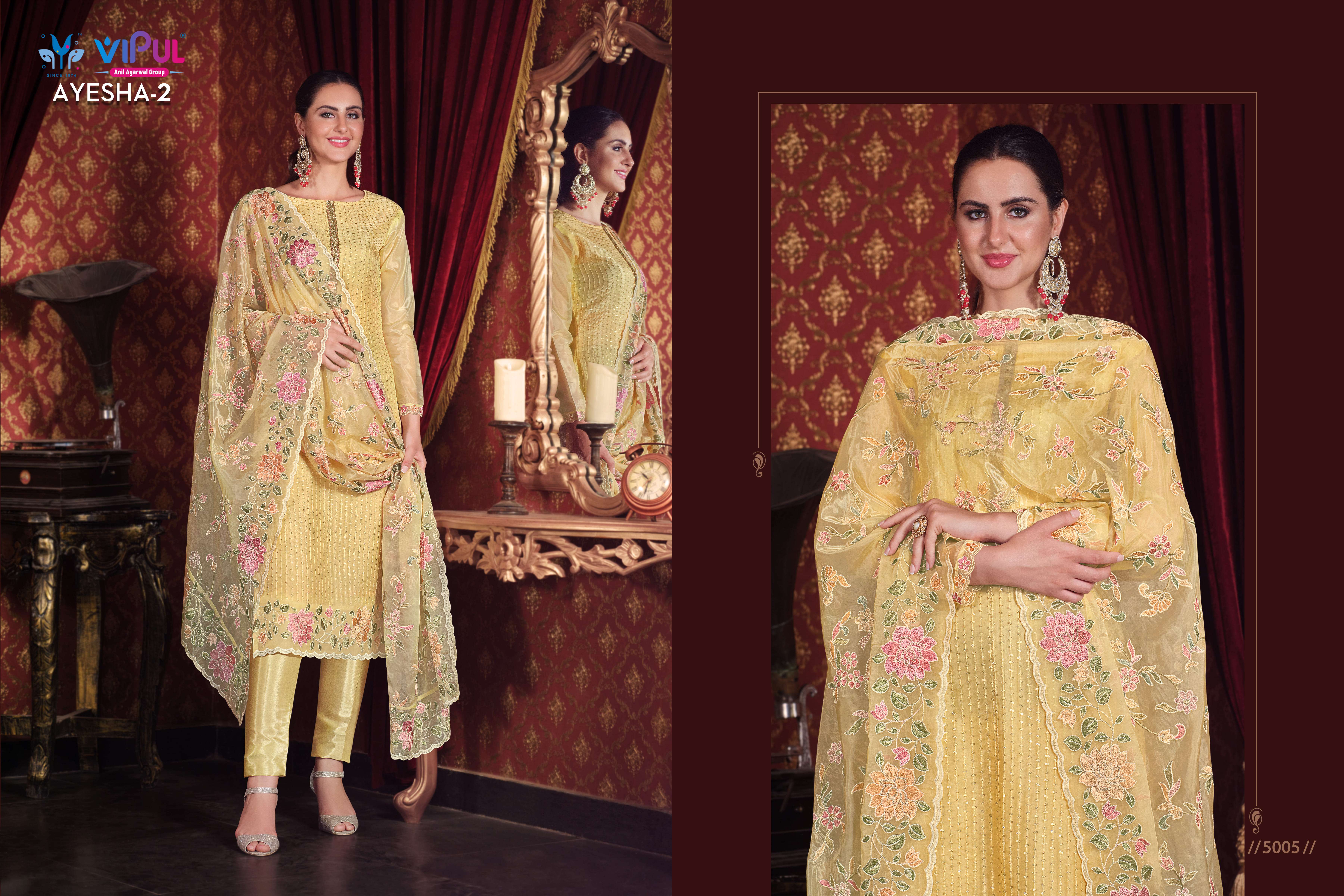VIPUL PRESENTS AYESHA VOL-2 5001 TO 5006 SERIES SOFT ORGANZA SALWAR SUITS COLLECTION AT WHOLESALE PRICE
