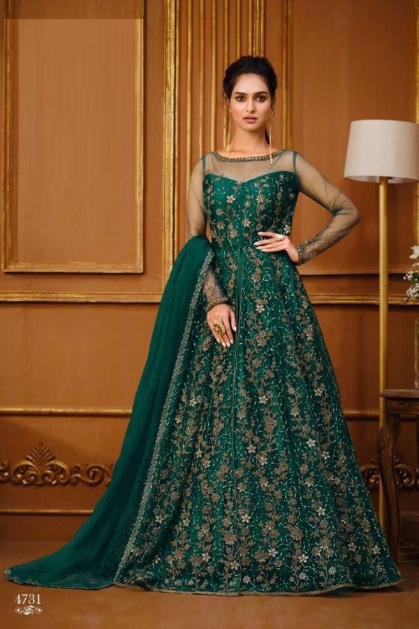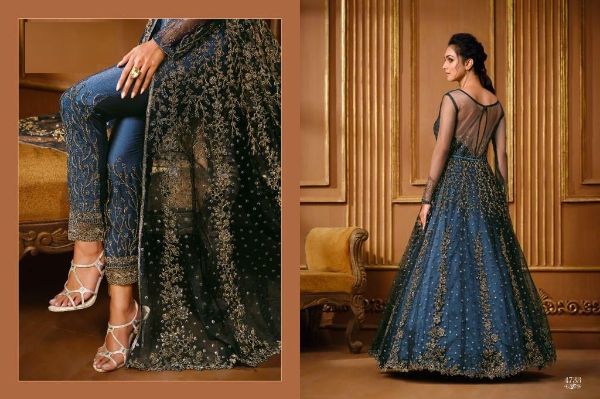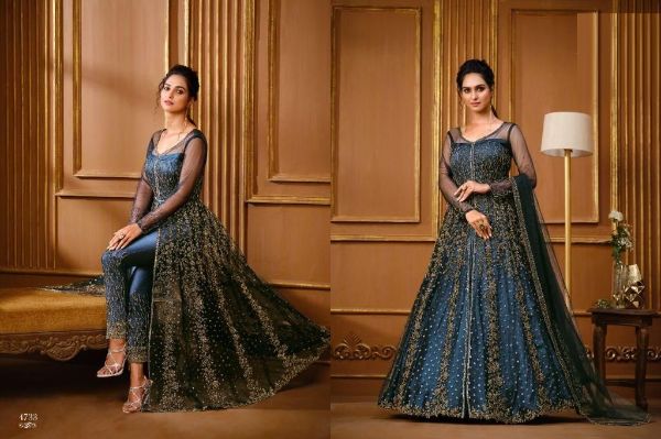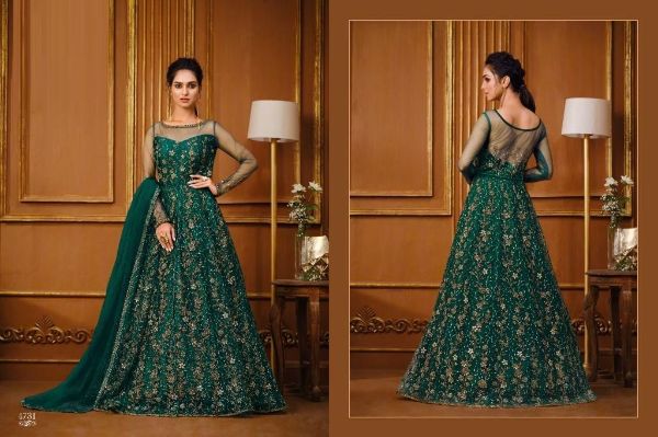 Latest Designer gown Collection. Exclusive with Foil & Thread Embroidery Work gives a Fashionable Look, High sensed style and luxury makes you ready for envious glazes and very rich & Royal in the Party, Function, Event etc.