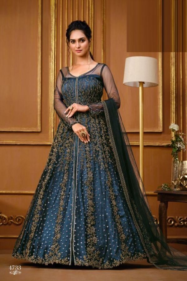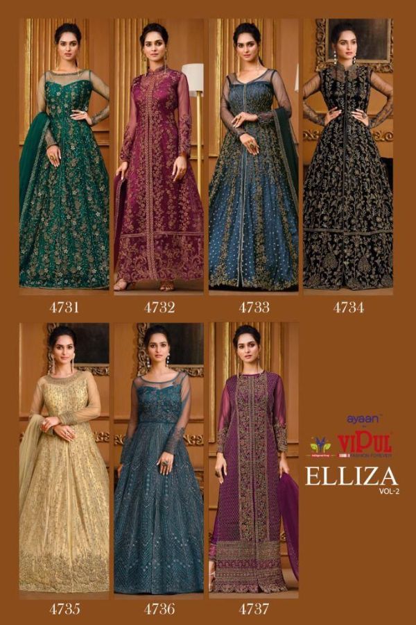 Vipul Presents Elliza Vol-2 4731-4737 Series Net With Designer Work Long Gown Collection