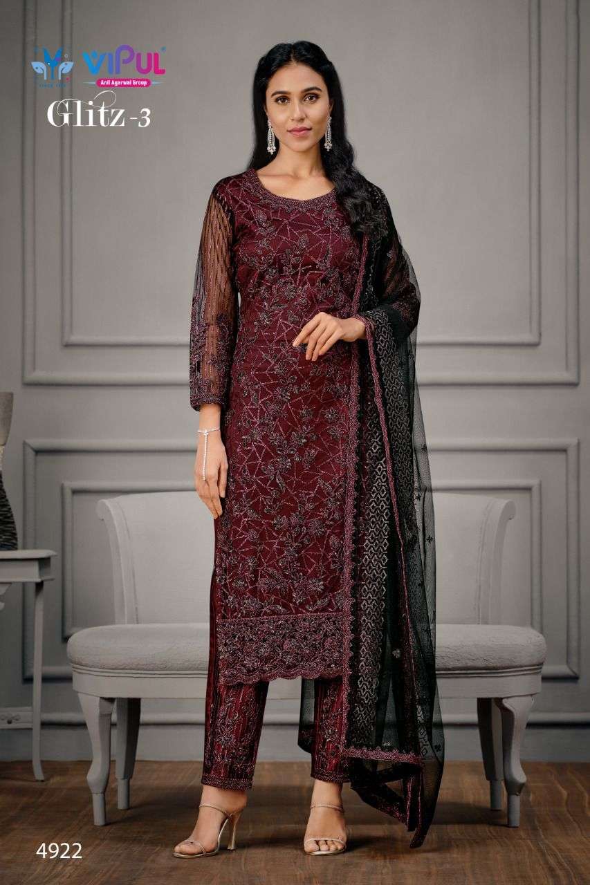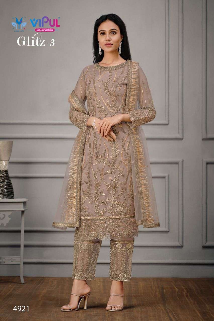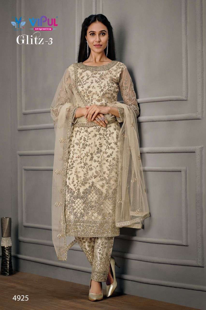 VIPUL PRESENTS GLITZ VOL-3 4921 - 4928 SERIES INDIAN DESIGNER STRAIGHT SALWAR KAMEEZ SUIT PARTY EID FESTIVE WEAR FOR WOMEN COLLECTION